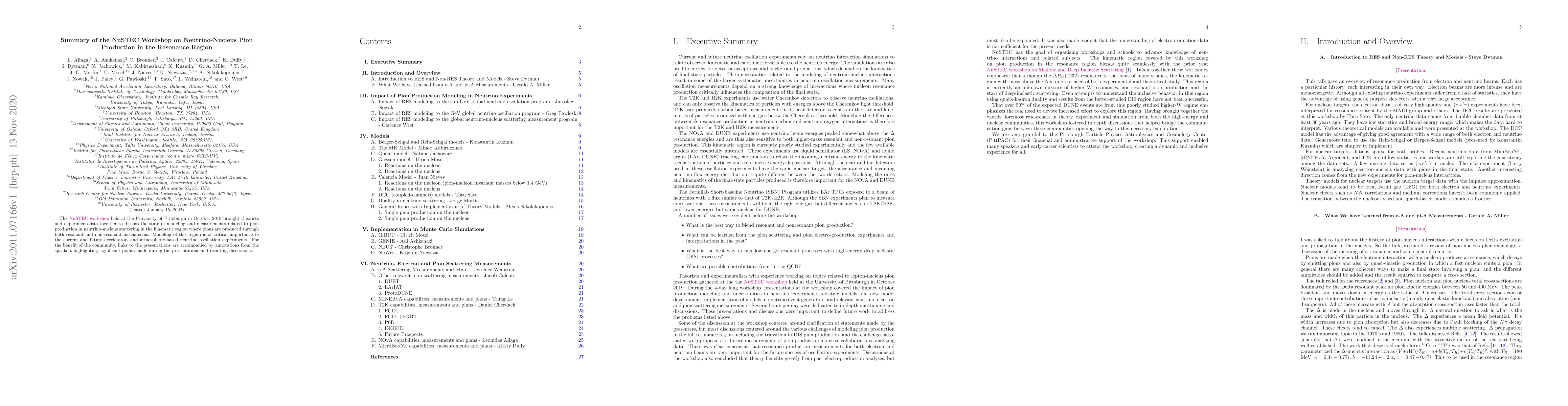 Researchers at the NuSTEC workshop discussed pion production in neutrino-nucleus scattering, focusing on models for resonance and non-resonance mechanisms crucial to accelerator- and atmospheric-based neutrino experiments.