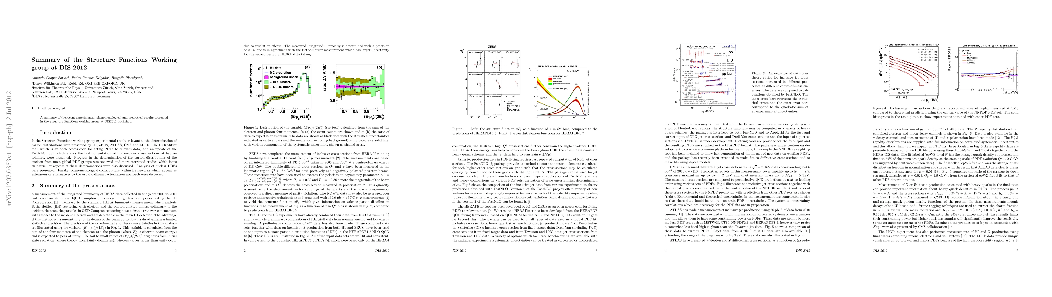 The Structure Functions Working group at DIS 2012 summarized recent experimental, phenomenological, and theoretical results, highlighting advancements in understanding deep inelastic scattering and the structure of nucleons. The findings contribute to refining the precision of parton distribution functions and related theoretical models.