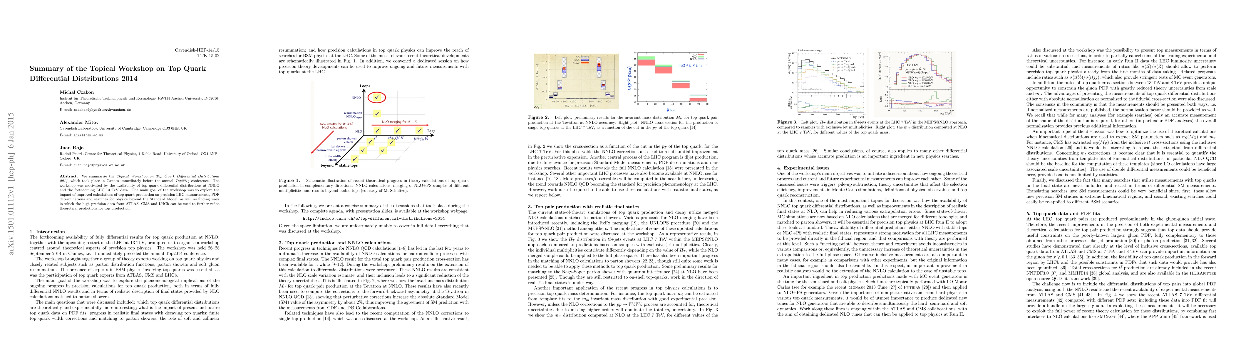 Researchers summarized the key findings of a workshop on top quark differential distributions, focusing on how improved calculations impact LHC measurements, PDF determinations, and searches for physics beyond the Standard Model.