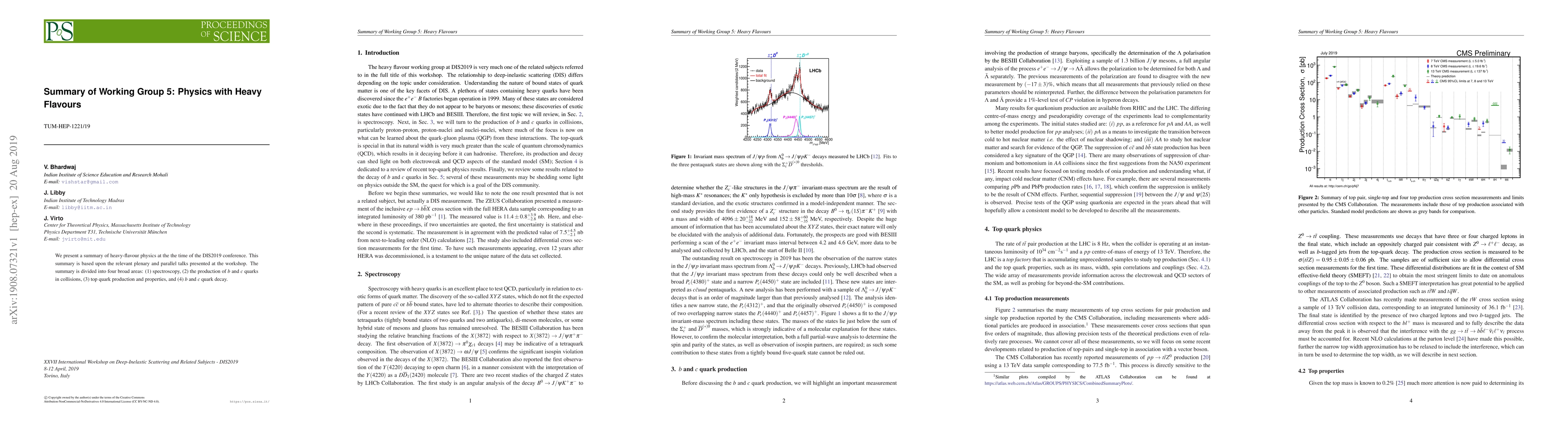 We present a summary of heavy-flavour physics at the the time of the DIS2019 conference. This summary is based upon the relevant plenary and parallel talks presented at the workshop. The summary is divided into four broad areas: (1) spectroscopy, (2) the production of b and c quarks in collisions, (3) top quark production and properties, and (4) b and c quark decay.
