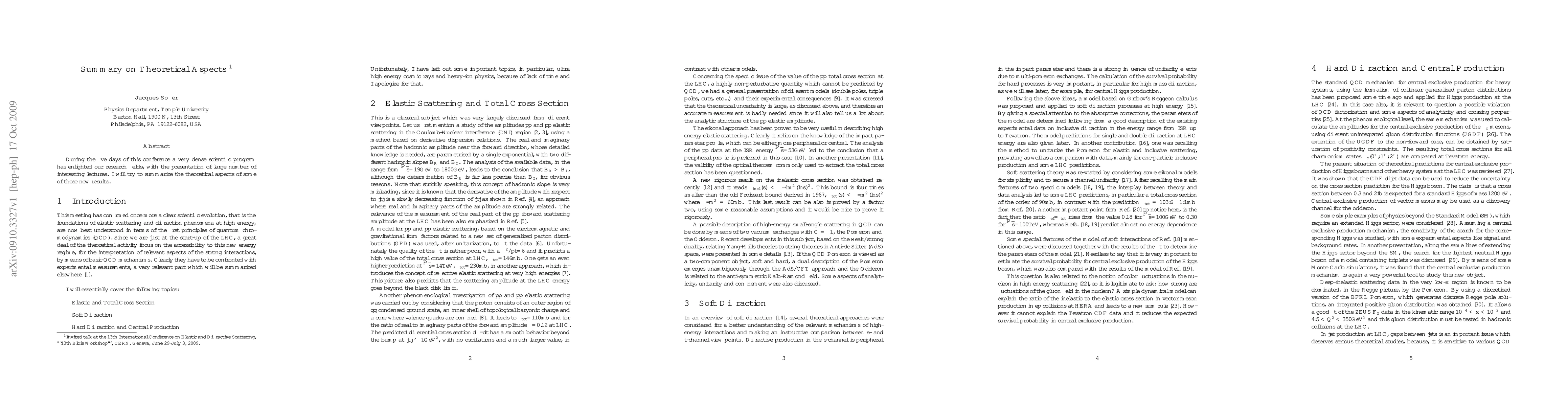 During the five days of this conference a very dense scientific program has enlighted our research fields, with the presentation of large number of interesting lectures. I will try to summarize the theoretical aspects of some of these new results.