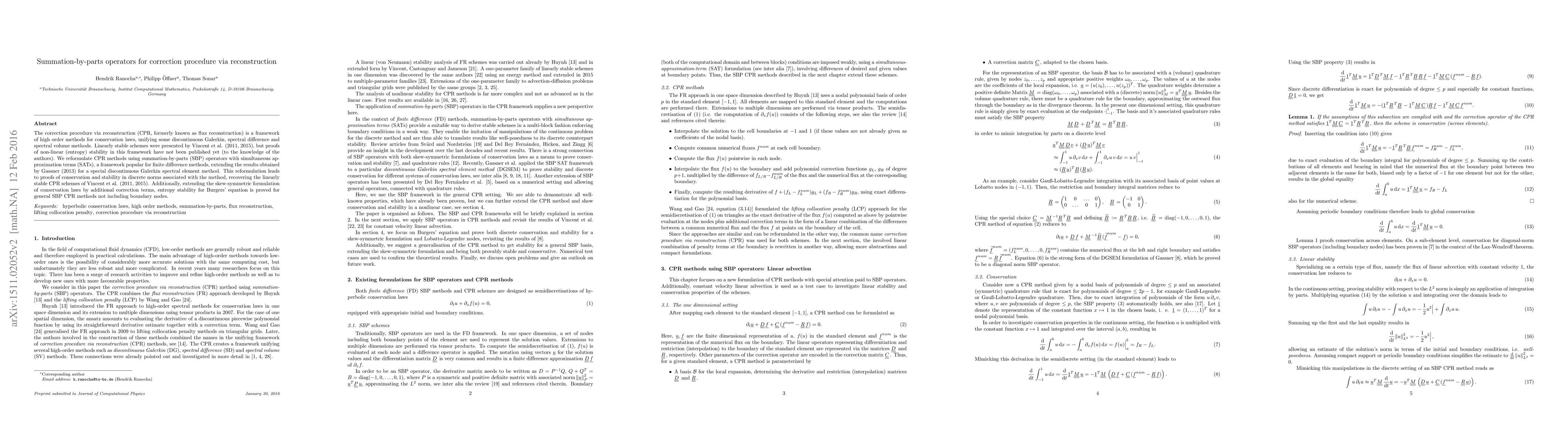 This paper reformulates correction procedure via reconstruction (CPR) methods using summation-by-parts (SBP) operators to establish proofs of conservation and stability, extending previous results for linearly stable schemes and proving entropy stability for Burgers' equation.
