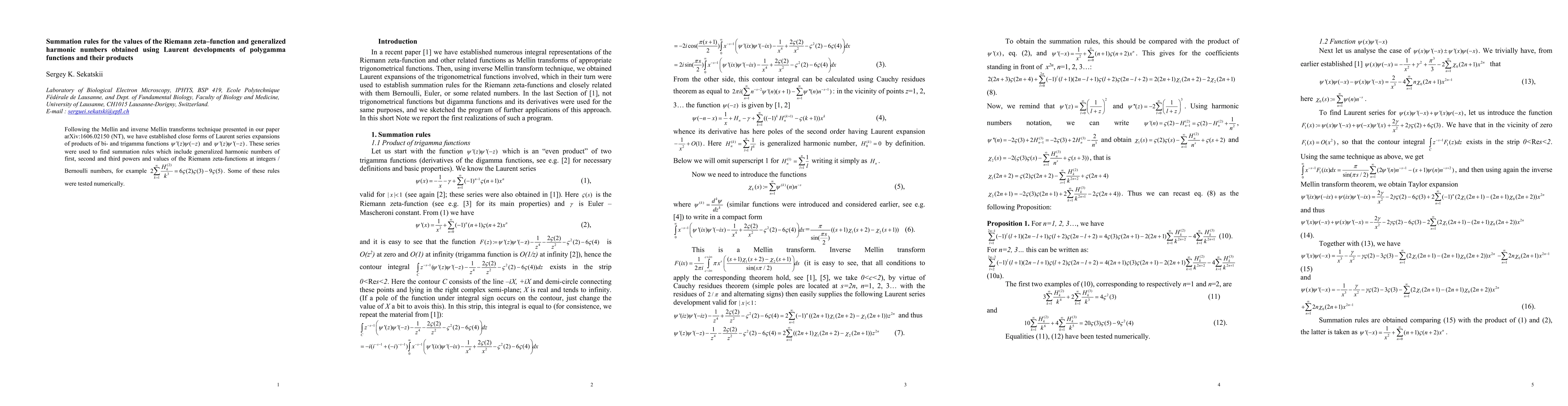 The research employs Mellin and inverse Mellin transform techniques to establish Laurent series expansions of products of bi- and trigamma functions, leading to summation rules for generalized harmonic numbers and Riemann zeta-functions.