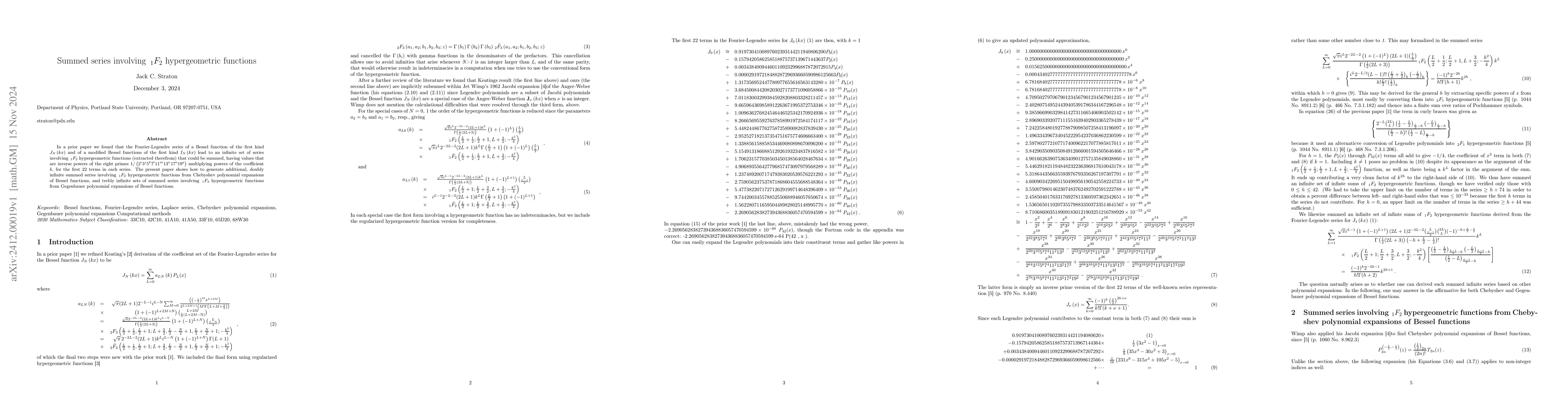 This paper extends prior work by generating new doubly infinite and trebly infinite series involving \,_{1}F_{2} hypergeometric functions from Chebyshev and Gegenbauer polynomial expansions of Bessel functions, respectively, expanding on the summation of similar series previously linked to inverse powers of prime factors.