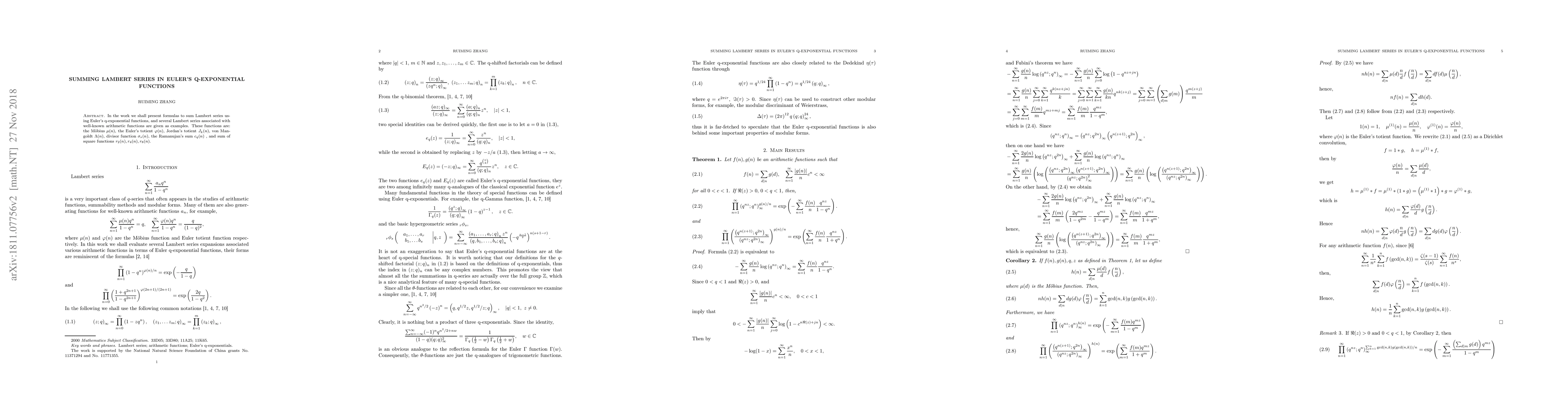 This paper presents formulas for summing Lambert series using Euler's q-exponential functions, with examples involving arithmetic functions such as the M\"obius function, Euler's totient, Jordan's totient, von Mangoldt function, divisor function, Ramanujan's sum, and sums of square functions.