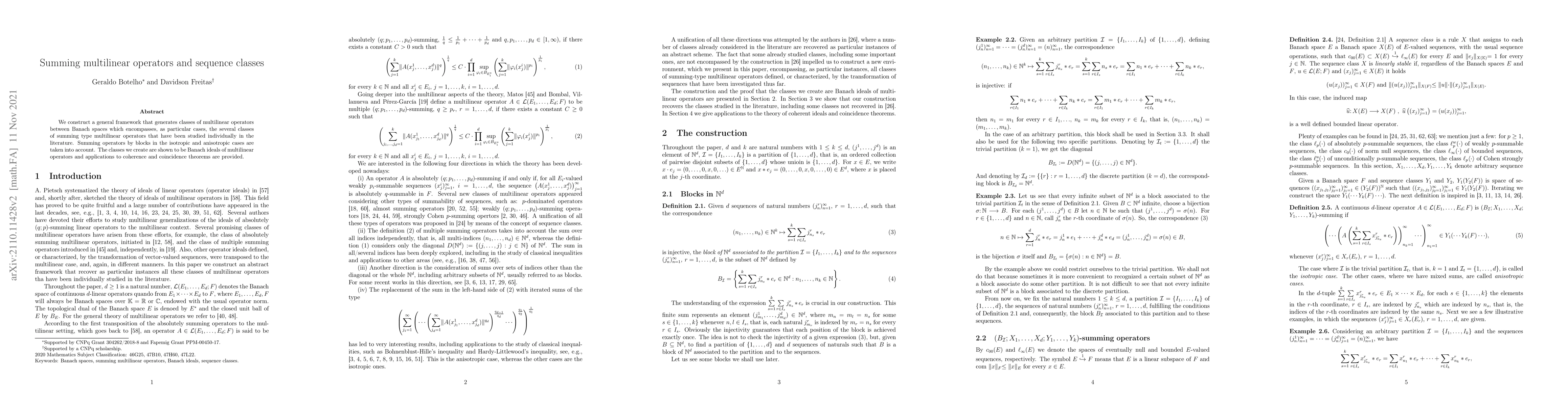 We construct a general framework that generates classes of multilinear operators between Banach spaces which encompasses, as particular cases, the several classes of summing type multilinear operators that have been studied individually in the literature. Summing operators by blocks in the isotropic and anisotropic cases are taken into account. The classes we create are shown to be Banach ideals of multilinear operators and applications to coherence and coincidence theorems are provided.