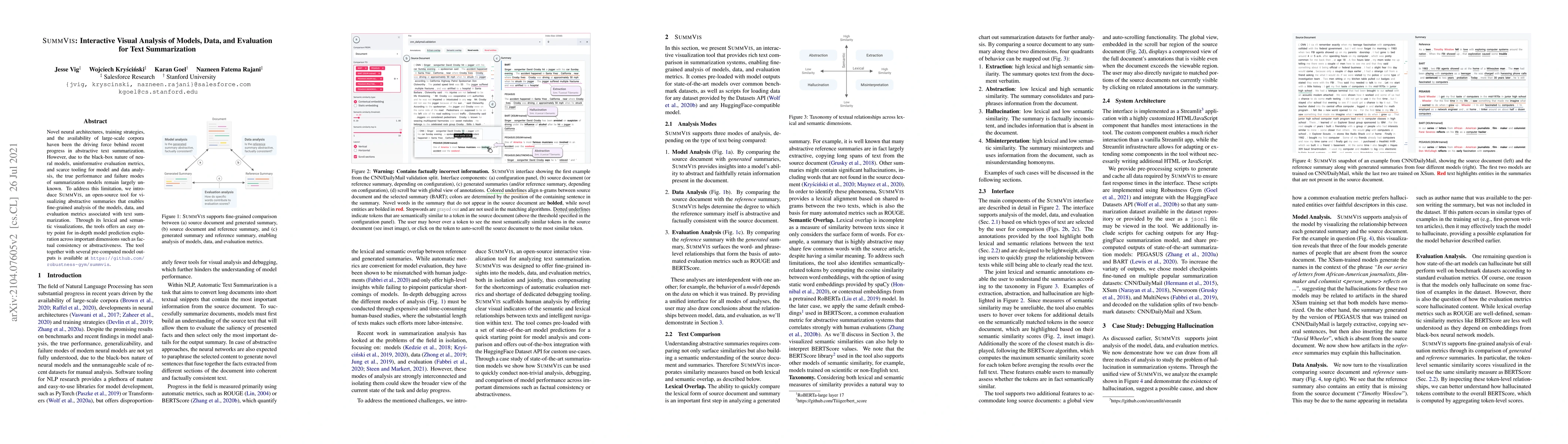 Novel neural architectures, training strategies, and the availability of large-scale corpora haven been the driving force behind recent progress in abstractive text summarization. However, due to the black-box nature of neural models, uninformative evaluation metrics, and scarce tooling for model and data analysis, the true performance and failure modes of summarization models remain largely unknown. To address this limitation, we introduce SummVis, an open-source tool for visualizing abstractive summaries that enables fine-grained analysis of the models, data, and evaluation metrics associated with text summarization. Through its lexical and semantic visualizations, the tools offers an easy entry point for in-depth model prediction exploration across important dimensions such as factual consistency or abstractiveness. The tool together with several pre-computed model outputs is available at https://github.com/robustness-gym/summvis.