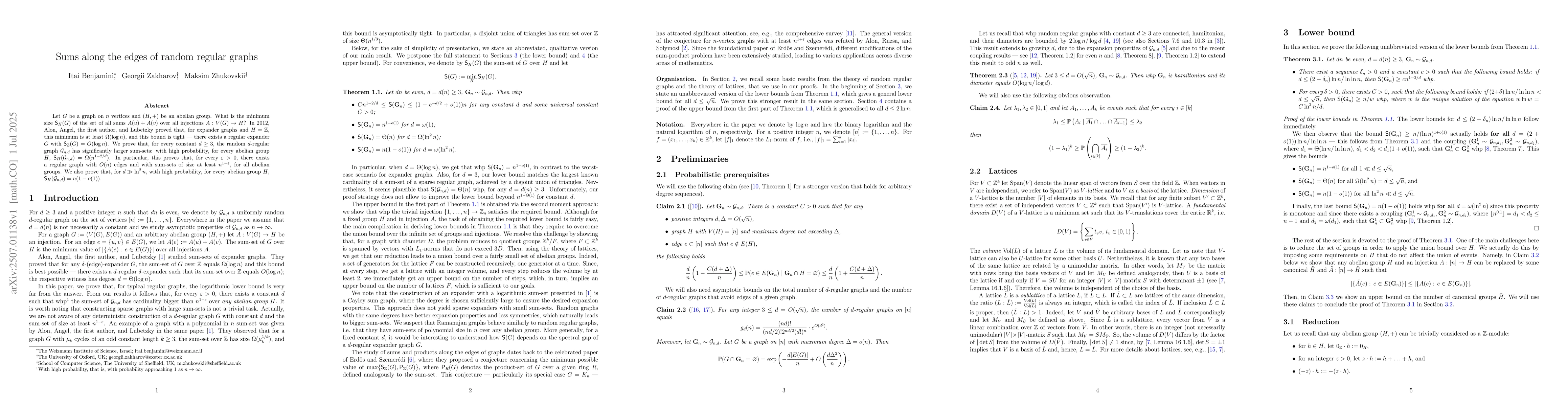 Let $G$ be a graph on $n$ vertices and $(H,+)$ be an abelian group. What is the minimum size ${\sf S}_H(G)$ of the set of all sums $A(u)+A(v)$ over all injections $A:V(G)\to H$? In 2012, Alon, Angel, the first author, and Lubetzky proved that, for expander graphs and $H=\mathbb{Z}$, this minimum is at least $\Omega(\log n)$, and this bound is tight -- there exists a regular expander $G$ with ${\sf S}_{\mathbb{Z}}(G)=O(\log n)$. We prove that, for every constant $d\geq 3$, the random $d$-regular graph $\mathcal{G}_{n,d}$ has significantly larger sum-sets: with high probability, for every abelian group $H$, ${\sf S}_H(\mathcal{G}_{n,d})=\Omega(n^{1-2/d})$. In particular, this proves that, for every $\varepsilon>0$, there exists a regular graph with $O(n)$ edges and with sum-sets of size at least $n^{1-\varepsilon}$, for all abelian groups. We also prove that, for $d\gg\ln^2 n$, with high probability, for every abelian group $H$, ${\sf S}_H(\mathcal{G}_{n,d})=n(1-o(1))$.