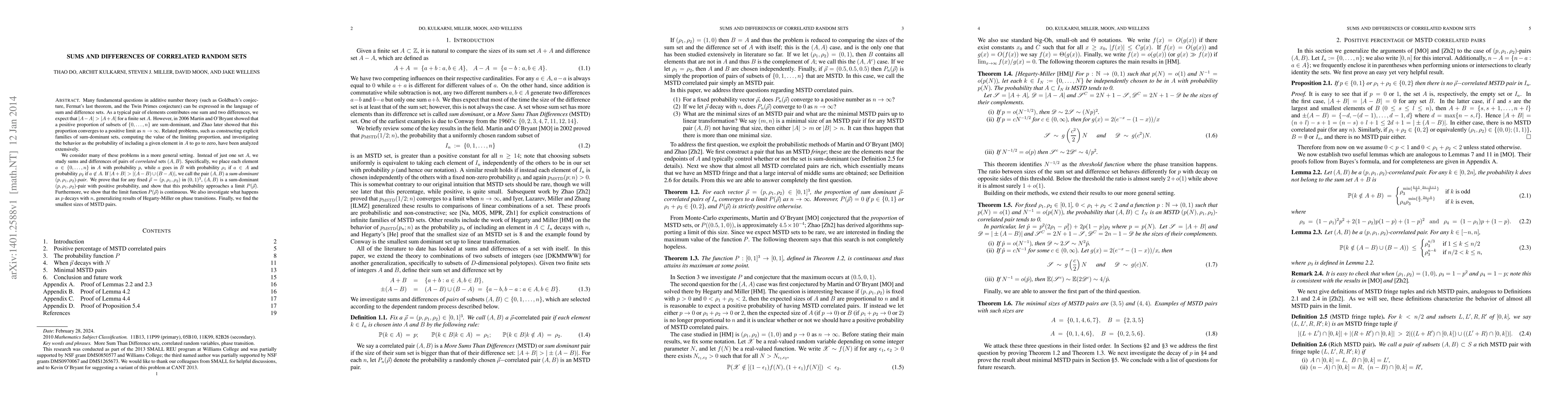 Many fundamental questions in additive number theory (such as Goldbach's conjecture, Fermat's last theorem, and the Twin Primes conjecture) can be expressed in the language of sum and difference sets. As a typical pair of elements contributes one sum and two differences, we expect that $|A-A| > |A+A|$ for a finite set $A$. However, in 2006 Martin and O'Bryant showed that a positive proportion of subsets of $\{0, \dots, n\}$ are sum-dominant, and Zhao later showed that this proportion converges to a positive limit as $n \to \infty$. Related problems, such as constructing explicit families of sum-dominant sets, computing the value of the limiting proportion, and investigating the behavior as the probability of including a given element in $A$ to go to zero, have been analyzed extensively. We consider many of these problems in a more general setting. Instead of just one set $A$, we study sums and differences of pairs of \emph{correlated} sets $(A,B)$. Specifically, we place each element $a \in \{0,\dots, n\}$ in $A$ with probability $p$, while $a$ goes in $B$ with probability $\rho_1$ if $a \in A$ and probability $\rho_2$ if $a \not \in A$. If $|A+B| > |(A-B) \cup (B-A)|$, we call the pair $(A,B)$ a \emph{sum-dominant $(p,\rho_1, \rho_2)$-pair}. We prove that for any fixed $\vec{\rho}=(p, \rho_1, \rho_2)$ in $(0,1)^3$, $(A,B)$ is a sum-dominant $(p,\rho_1, \rho_2)$-pair with positive probability, and show that this probability approaches a limit $P(\vec{\rho})$. Furthermore, we show that the limit function $P(\vec{\rho})$ is continuous. We also investigate what happens as $p$ decays with $n$, generalizing results of Hegarty-Miller on phase transitions. Finally, we find the smallest sizes of MSTD pairs.