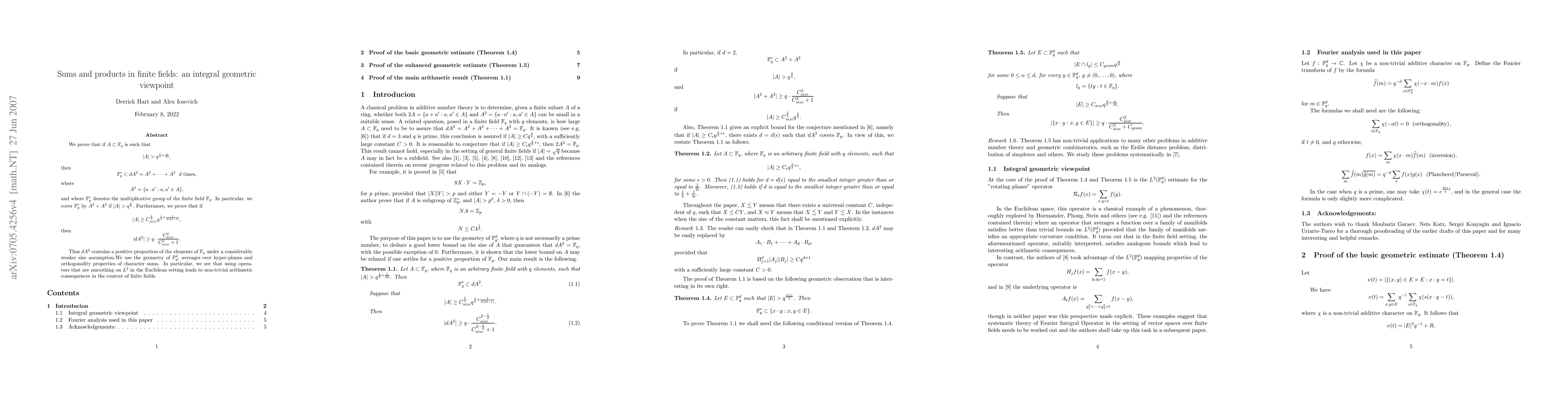 We prove that if $A \subset {\Bbb F}_q$ is such that $$|A|>q^{{1/2}+\frac{1}{2d}},$$ then $${\Bbb F}_q^{*} \subset dA^2=A^2+...+A^2 d \text{times},$$ where $$A^2=\{a \cdot a': a,a' \in A\},$$ and where ${\Bbb F}_q^{*}$ denotes the multiplicative group of the finite field ${\Bbb F}_q$. In particular, we cover ${\Bbb F}_q^{*}$ by $A^2+A^2$ if $|A|>q^{{3/4}}$. Furthermore, we prove that if $$|A| \ge C_{size}^{\frac{1}{d}}q^{{1/2}+\frac{1}{2(2d-1)}},$$ then $$|dA^2| \ge q \cdot \frac{C^2_{size}}{C^2_{size}+1}.$$ Thus $dA^2$ contains a positive proportion of the elements of ${\Bbb F}_q$ under a considerably weaker size assumption.We use the geometry of ${\Bbb F}_q^d$, averages over hyper-planes and orthogonality properties of character sums. In particular, we see that using operators that are smoothing on $L^2$ in the Euclidean setting leads to non-trivial arithmetic consequences in the context of finite fields.