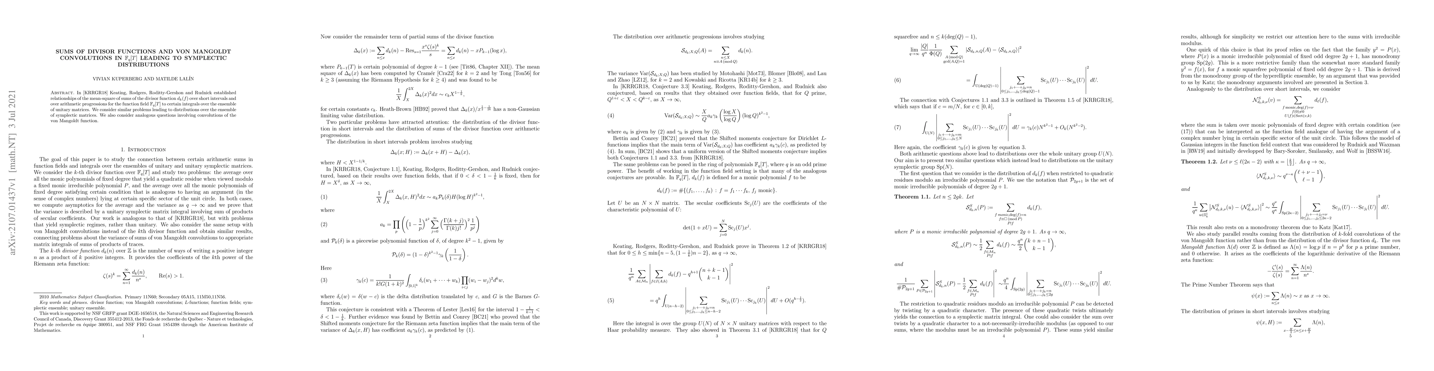 Research investigates relationships between sums of divisor functions and von Mangoldt convolutions in $ extbf{F}_q[T]$, leading to symplectic distributions, building on existing connections to unitary matrices.