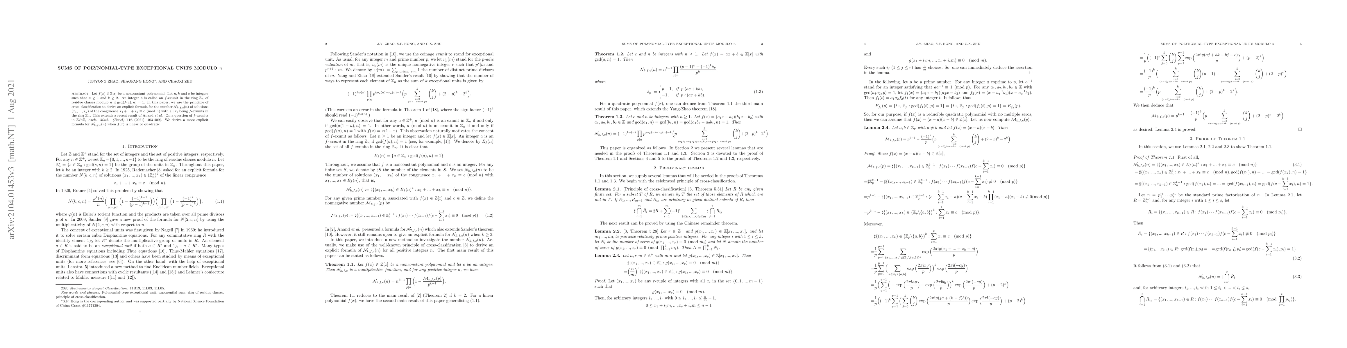Let $f(x)\in\mathbb{Z}[x]$ be a nonconstant polynomial. Let $n, k$ and $c$ be integers such that $n\ge 1$ and $k\ge 2$. An integer $a$ is called an $f$-exunit in the ring $\mathbb{Z}_n$ of residue classes modulo $n$ if $\gcd(f(a),n)=1$. In this paper, we use the principle of cross-classification to derive an explicit formula for the number ${\mathcal N}_{k,f,c}(n)$ of solutions $(x_1,...,x_k)$ of the congruence $x_1+...+x_k\equiv c\pmod n$ with all $x_i$ being $f$-exunits in the ring $\mathbb{Z}_n$. This extends a recent result of Anand {\it et al.} [On a question of $f$-exunits in $\mathbb{Z}/{n\mathbb{Z}}$, {\it Arch. Math. (Basel)} {\bf 116} (2021), 403-409]. We derive a more explicit formula for ${\mathcal N}_{k,f,c}(n)$ when $f(x)$ is linear or quadratic.