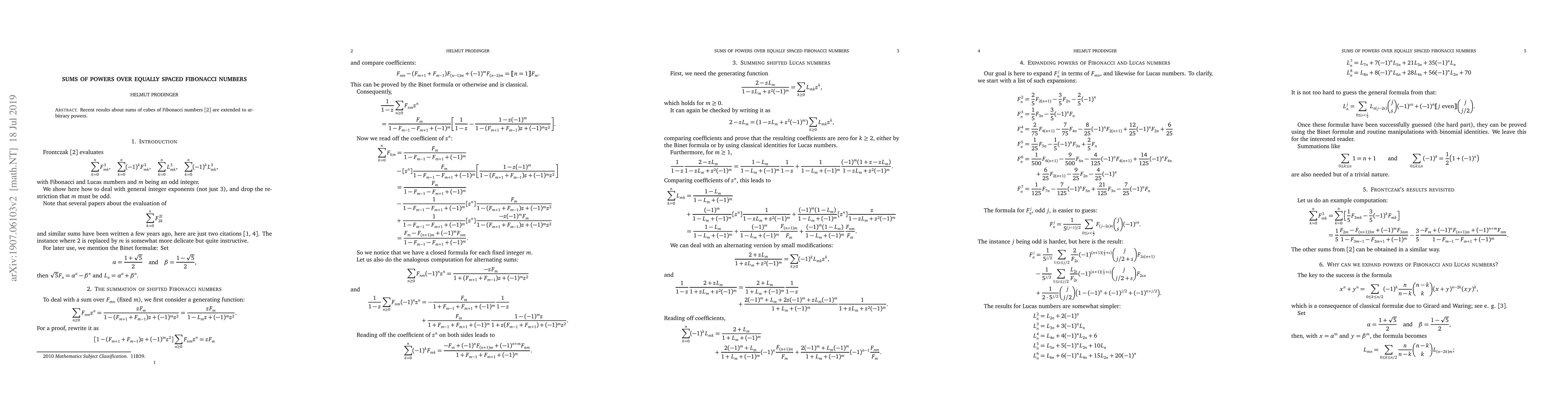 Summary: This paper extends recent findings on the sums of cubes of Fibonacci numbers to include sums of Fibonacci numbers raised to any power, building on the work of Frontczak [2018]. The study explores the patterns and properties of these sums over equally spaced Fibonacci sequences.