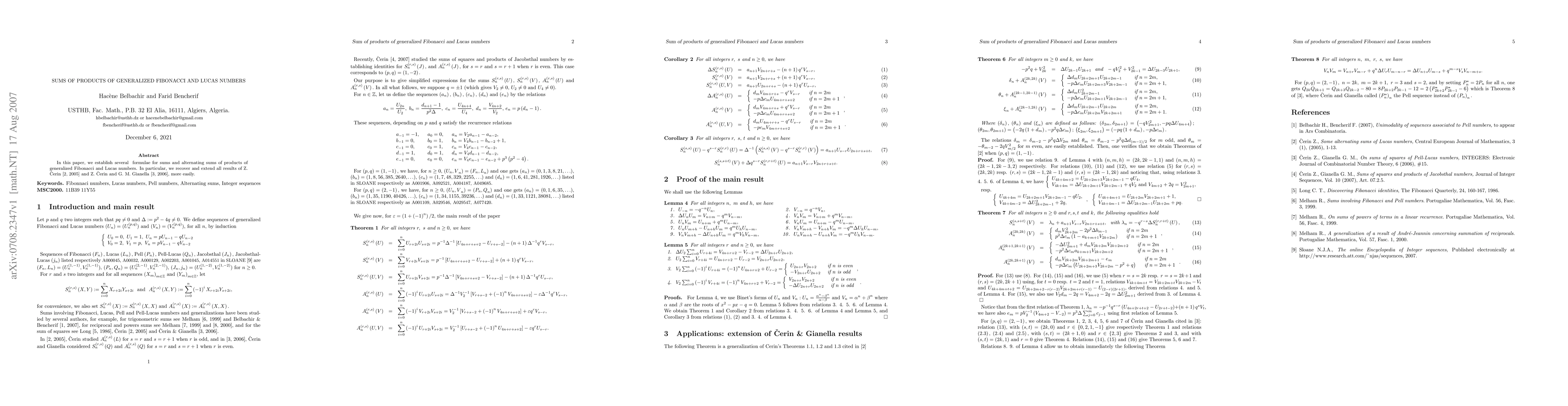 In this paper, we establish several formulae for sums and alternating sums of products of generalized Fibonacci and Lucas numbers. In particular, we recover and extend all results of Z. Cerin and Z. Cerin & G. M. Gianella, more easily.
