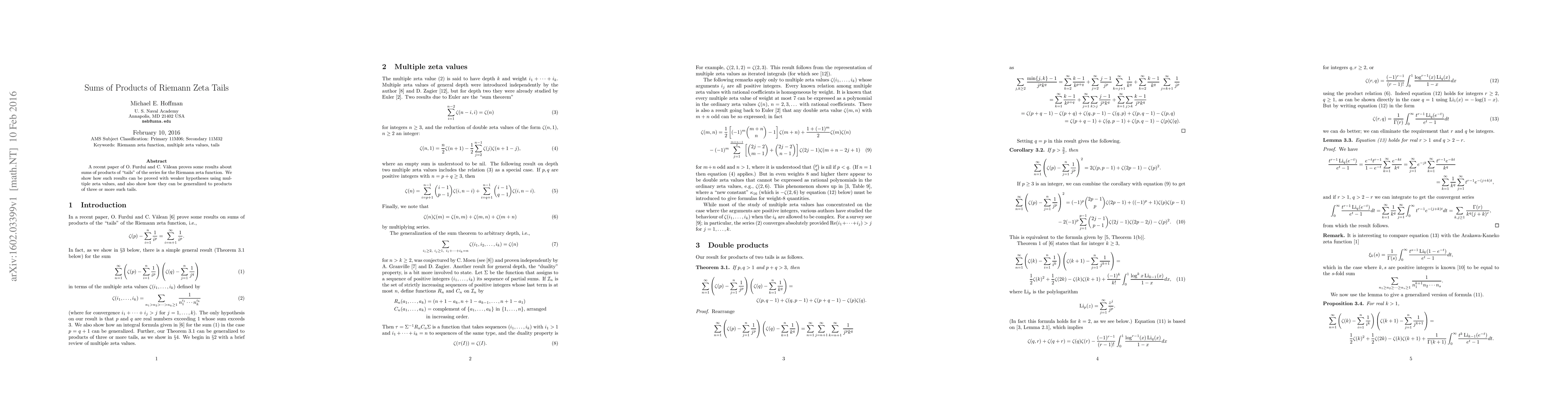 A recent paper of Furdui and Valean proves some results about sums of products of "tails" of the series for the Riemann zeta function. We show how such results can be proved with weaker hypotheses using multiple zeta values, and also show how they can be generalized to products of three or more such tails.