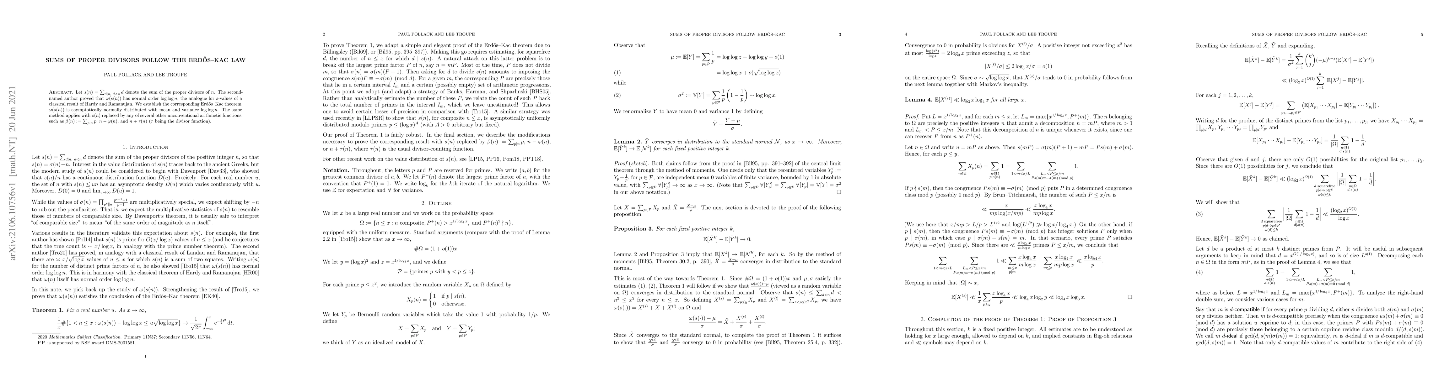This research paper proves a variant of Erdös--Kac theorem for sums of proper divisors, showing they are asymptotically normally distributed with specific parameters.