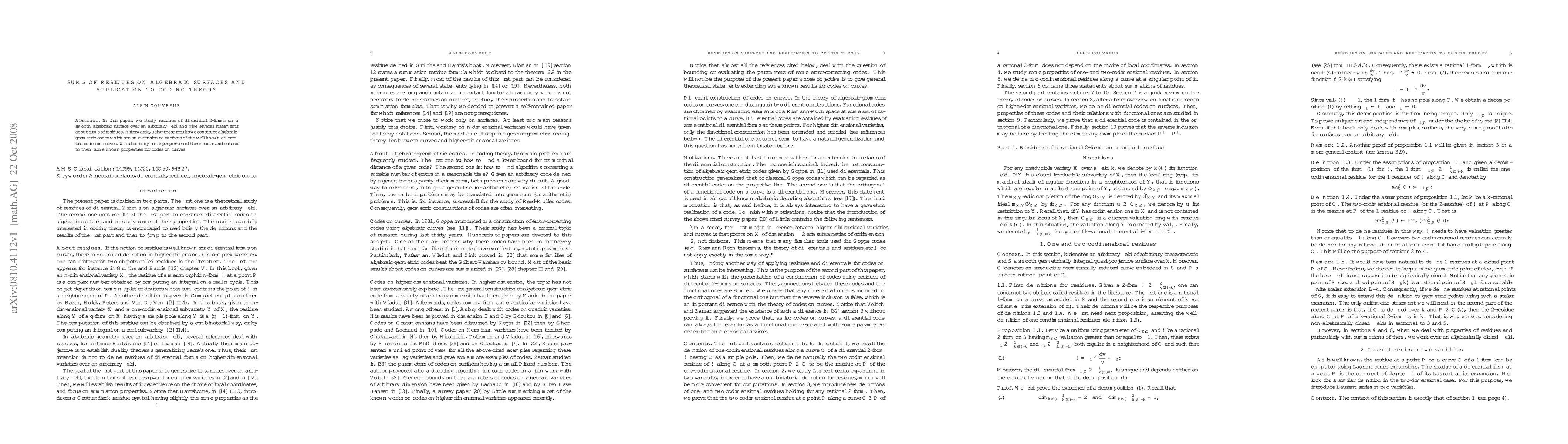 In this paper, we study residues of differential 2-forms on a smooth algebraic surface over an arbitrary field and give several statements about sums of residues. Afterwards, using these results we construct algebraic-geometric codes which are an extension to surfaces of the well-known differential codes on curves. We also study some properties of these codes and extend to them some known properties for codes on curves.