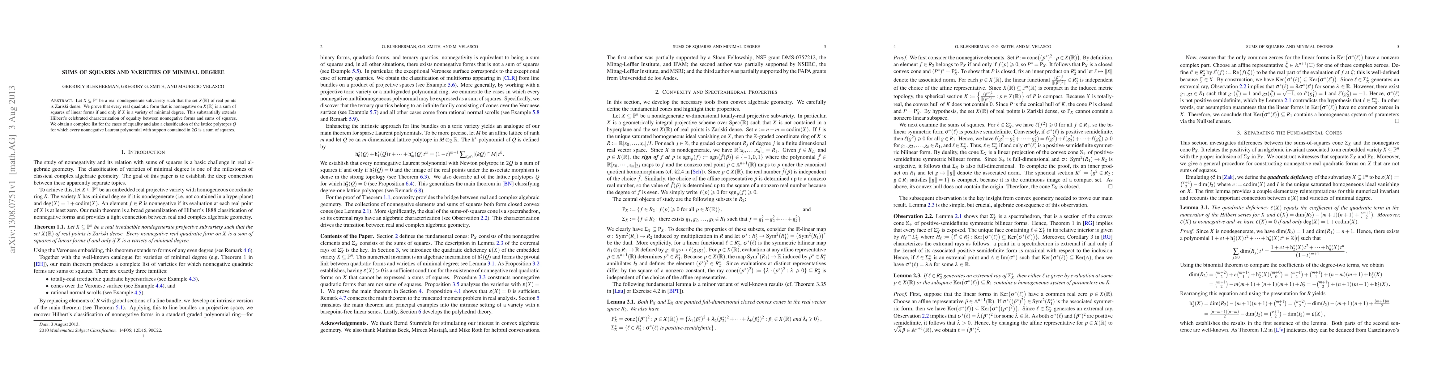 A research paper proves that a real projective subvariety X with dense real points can have nonnegative quadratic forms expressed as sums of squares only if X has minimal degree, extending Hilbert's theorem.