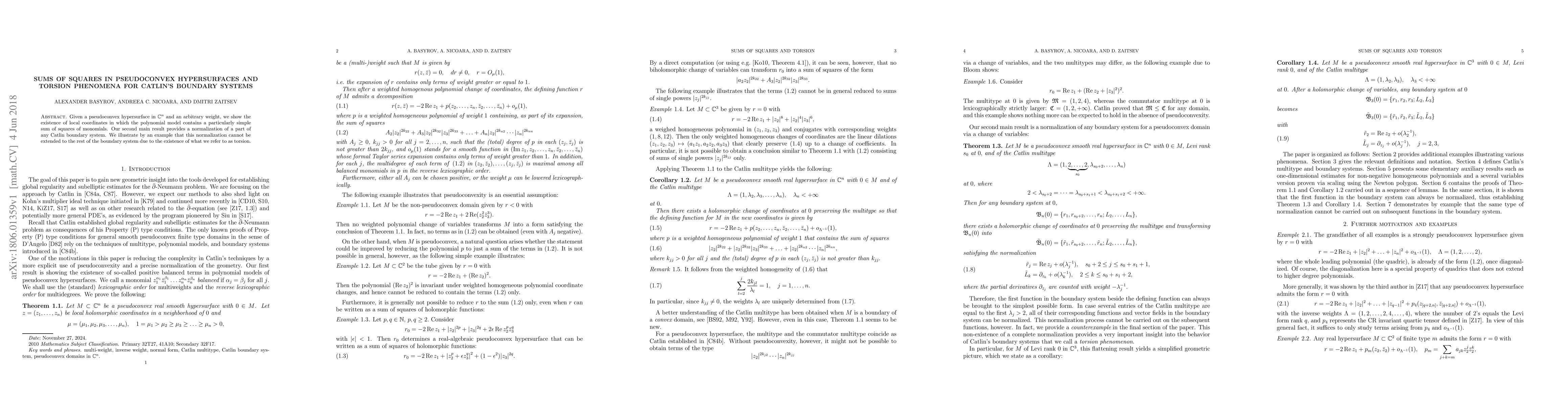 Given a pseudoconvex hypersurface in C^n and an arbitrary weight, we show the existence of local coordinates in which the polynomial model contains a particularly simple sum of squares of monomials. Our second main result provides a normalization of a part of any Catlin boundary system. We illustrate by an example that this normalization cannot be extended to the rest of the boundary system due to the existence of what we refer to as torsion.