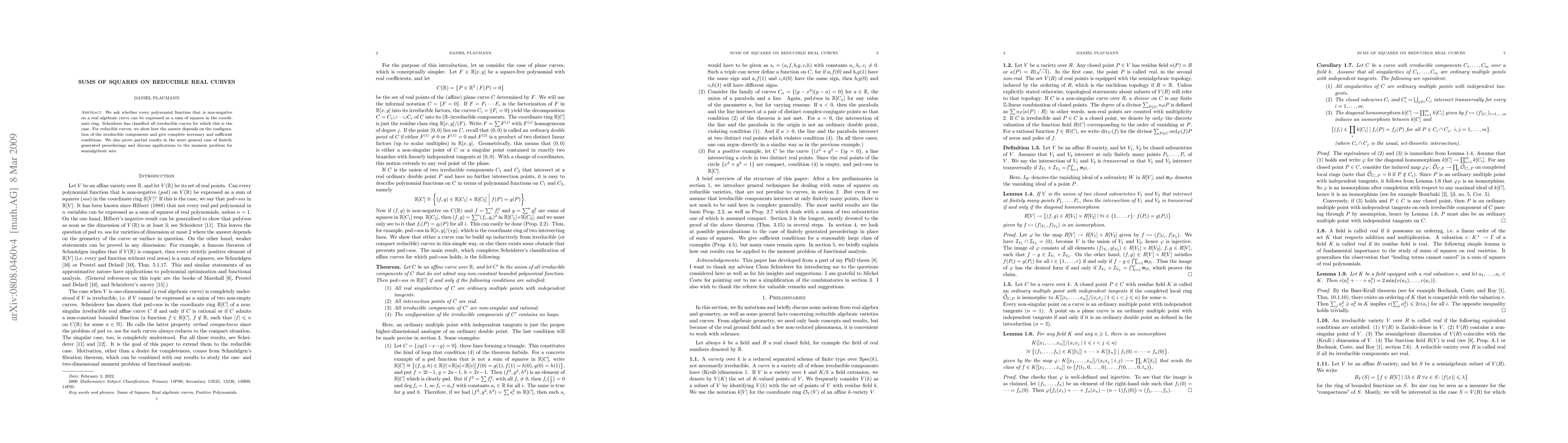 We ask whether every polynomial function that is non-negative on a real algebraic curve can be expressed as a sum of squares in the coordinate ring. Scheiderer has classified all irreducible curves for which this is the case. For reducible curves, we show how the answer depends on the configuration of the irreducible components and give complete necessary and sufficient conditions. We also prove partial results in the more general case of finitely generated preorderings and discuss applications to the moment problem for semialgebraic sets.