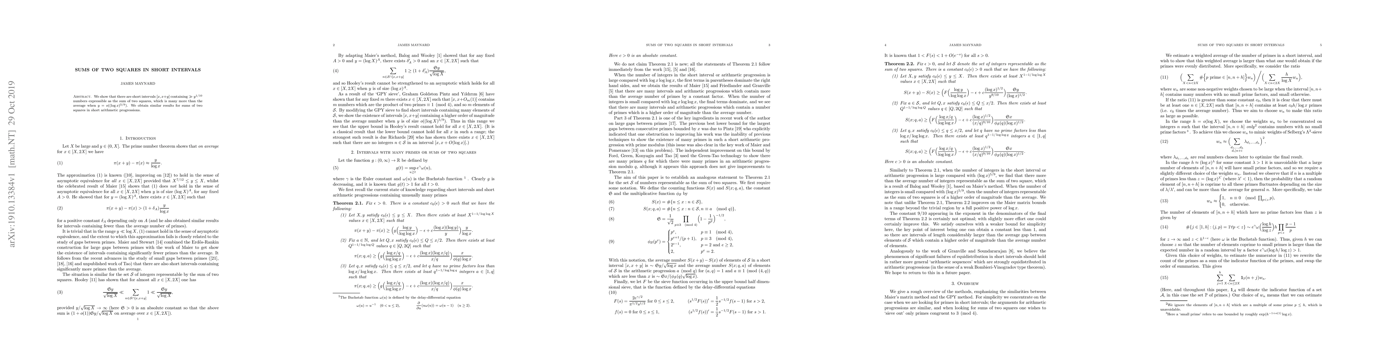 The paper demonstrates that short intervals $[x,x+y]$ contain significantly more numbers expressible as sums of two squares compared to the average, specifically $\gg y^{1/10}$ such numbers when $y=o((\log{x})^{5/9})$. Similar findings are reported for sums of two squares in short arithmetic progressions.