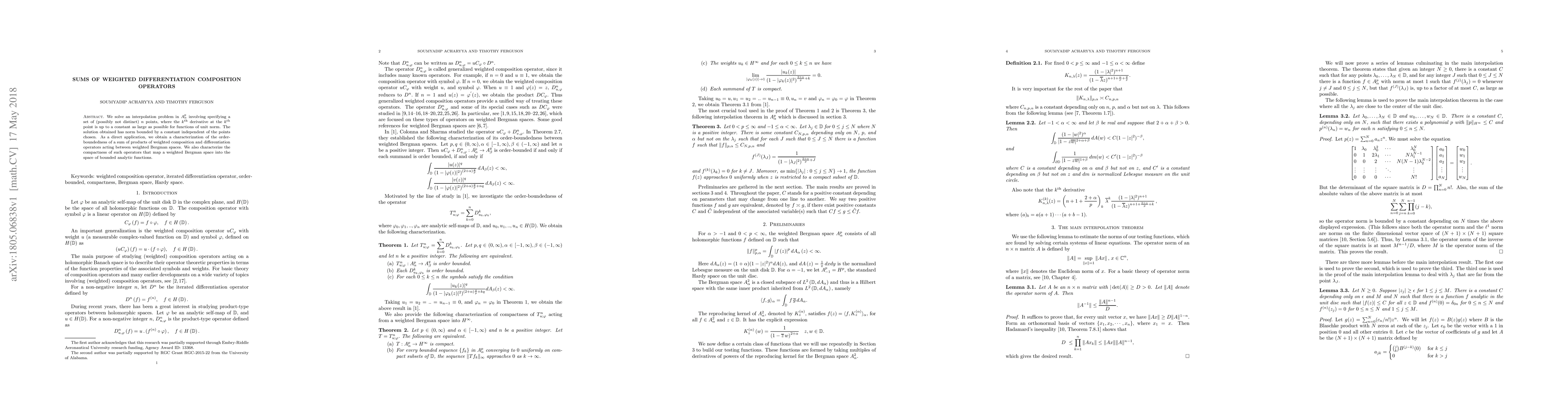 The paper solves an interpolation problem involving weighted differentiation composition operators and characterizes their order-boundedness and compactness for mapping into bounded analytic functions.