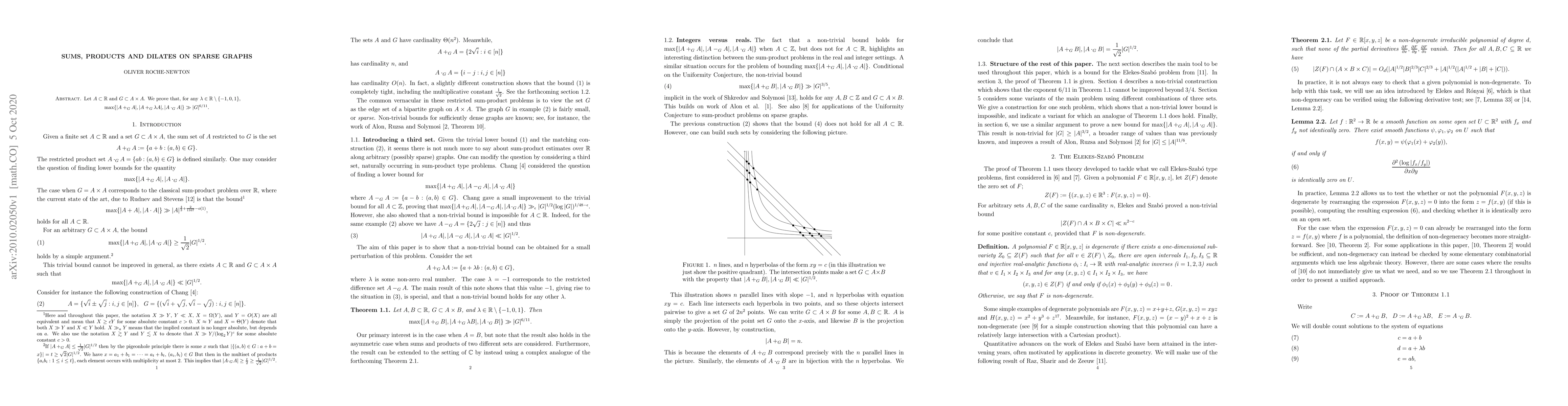 Let $A \subset \mathbb R$ and $G \subset A \times A$. We prove that, for any $\lambda \in \mathbb R \setminus \{-1,0,1\}$, \[ \max \{|A+_G A|, |A+_G \lambda A|, |A\cdot_G A|\} \gg |G|^{6/11}. \]
