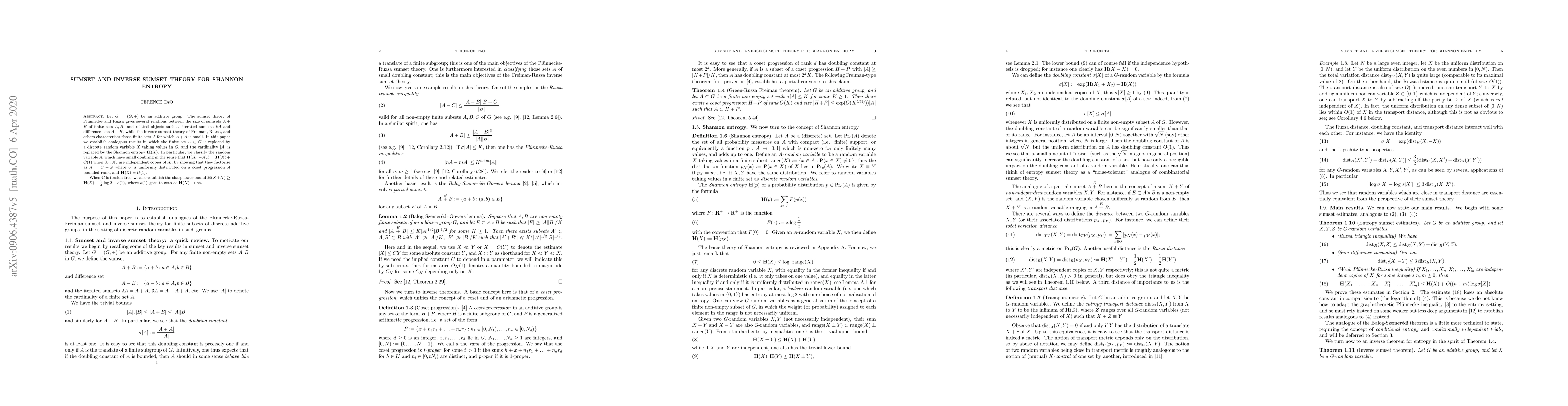 This paper extends sumset and inverse sumset theorems from finite sets to discrete random variables, using Shannon entropy instead of cardinality. It classifies random variables with small entropy doubling and establishes a sharp lower bound for entropy in torsion-free groups.