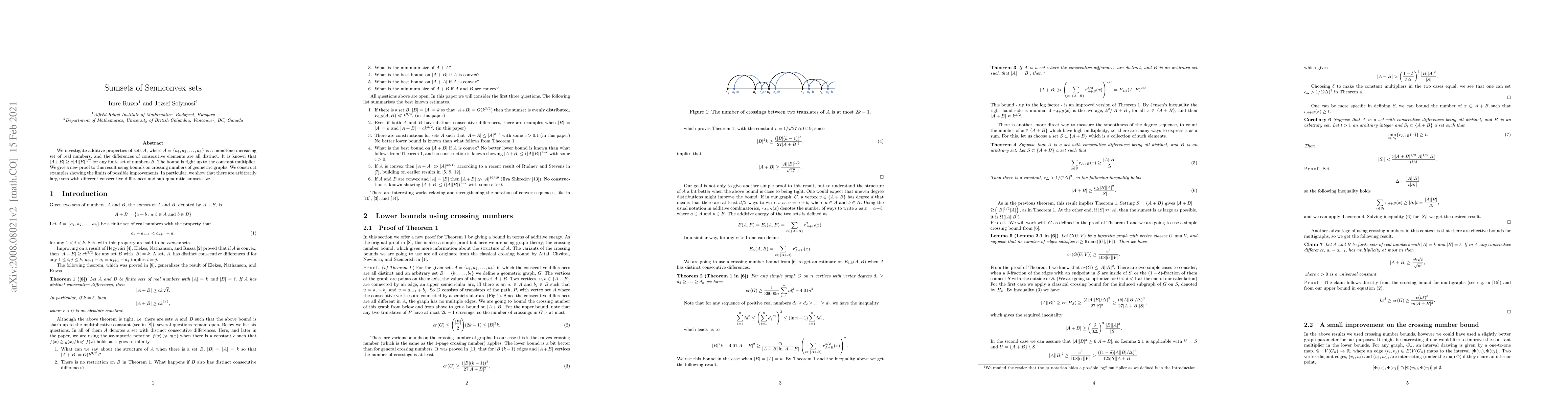 This paper explores additive properties of semiconvex sets, proving that the size of their sumsets with any finite set $B$ is at least $c|A||B|^{1/2}$, with a new proof leveraging geometric graph theory. It also constructs examples demonstrating the limits of potential improvements, showing large sets with distinct consecutive differences and sub-quadratic sumset sizes.