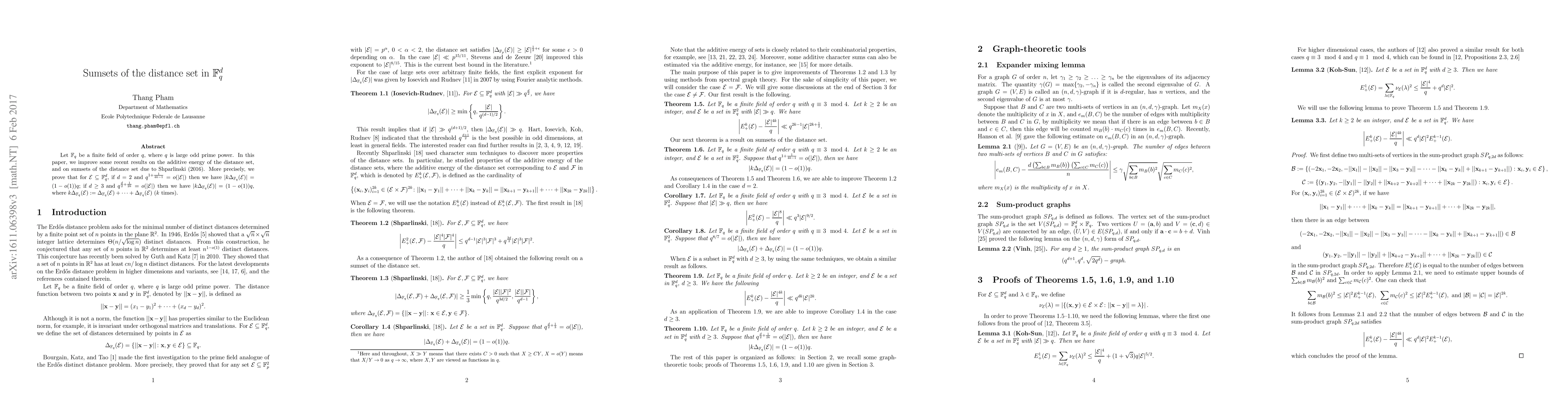 The research provides a new technical contribution by introducing a novel approach to solving the Erdøs distance problem using graph theory and sum-product type estimates.