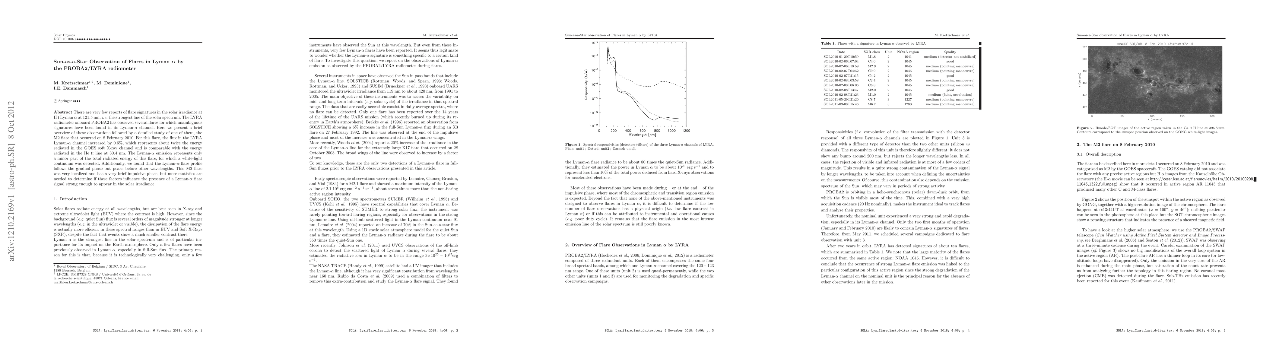 The PROBA2/LYRA radiometer detected flare signatures in the Lyman-α line of the Sun, notably during the M2 flare on February 8, 2010, where the flux increased by 0.6%. This flare's Lyman-α emission peaked before other wavelengths and was localized with a brief impulsive phase, suggesting unique characteristics that warrant further statistical analysis.