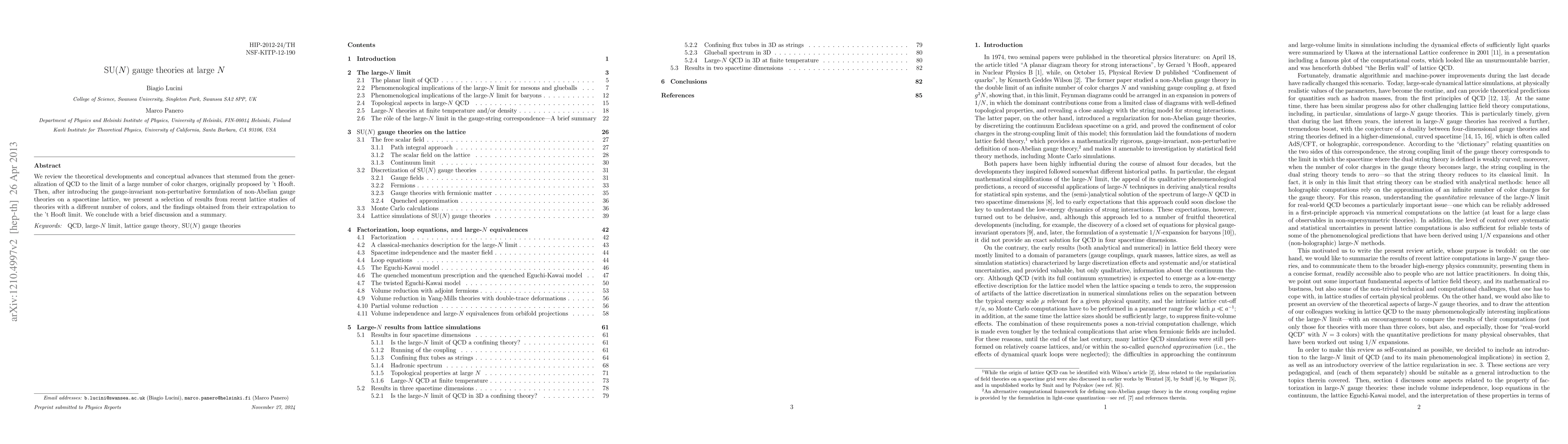 The paper presents a detailed review of lattice formulations and numerical techniques for studying SU(N) gauge theories in the large N limit, including robust error estimation and extrapolation methods.