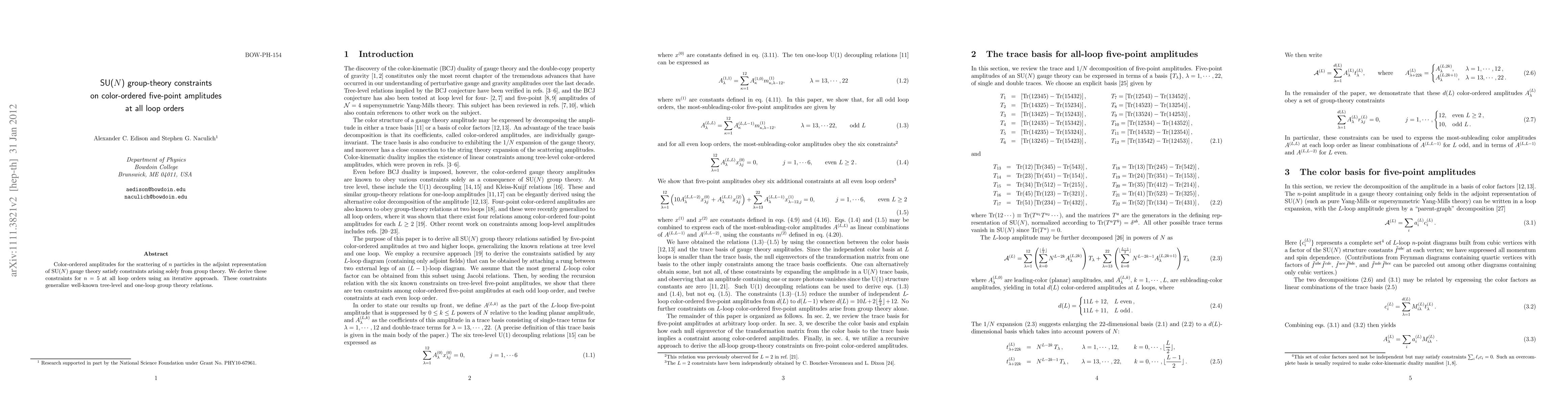 This paper derives SU(N) group-theory constraints for color-ordered five-point amplitudes in gauge theory at all loop orders, extending beyond tree-level and one-loop relations through an iterative method. These constraints are fundamental to understanding scattering processes in the adjoint representation.