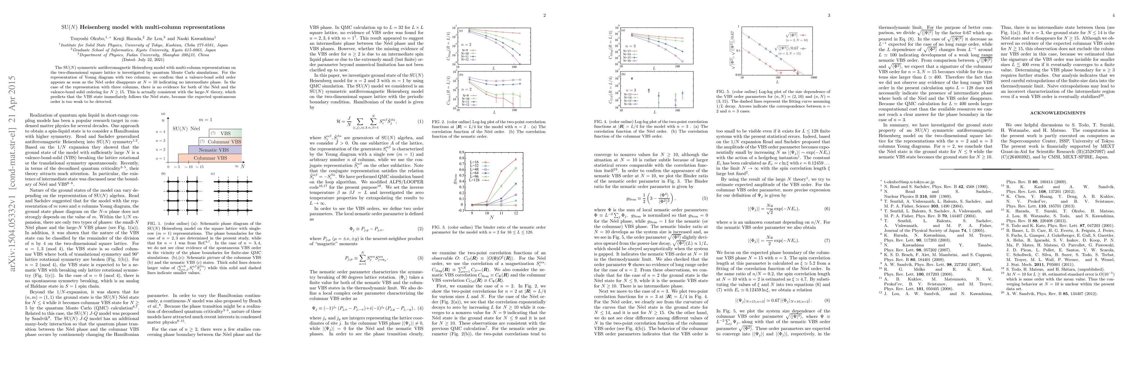 Researchers investigated the SU(N) Heisenberg model with multi-column representations on a 2D lattice using quantum Monte Carlo simulations. They found that a valence-bond solid order appears at N = 10, but no intermediate phase exists, contradicting some large-N theory predictions.
