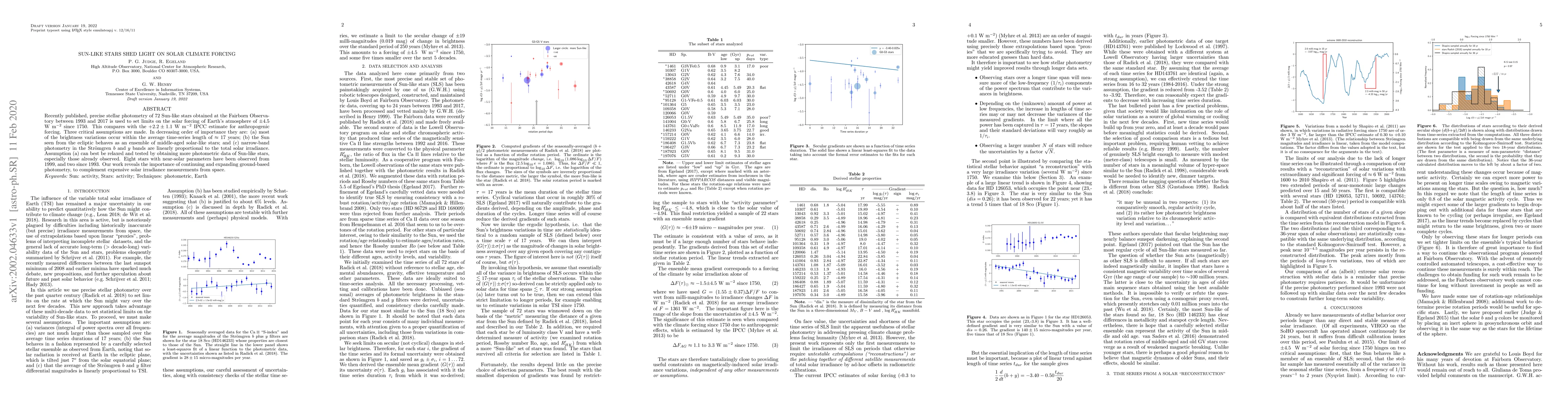 This paper uses precise stellar photometry of 72 Sun-like stars to estimate solar forcing on Earth's atmosphere at $\pm$ 4.5 W m$^{-2}$ since 1750, highlighting the need for continued ground-based photometric observations to complement space-based measurements. The study makes three critical assumptions about stellar brightness variations and their relation to solar irradiance.