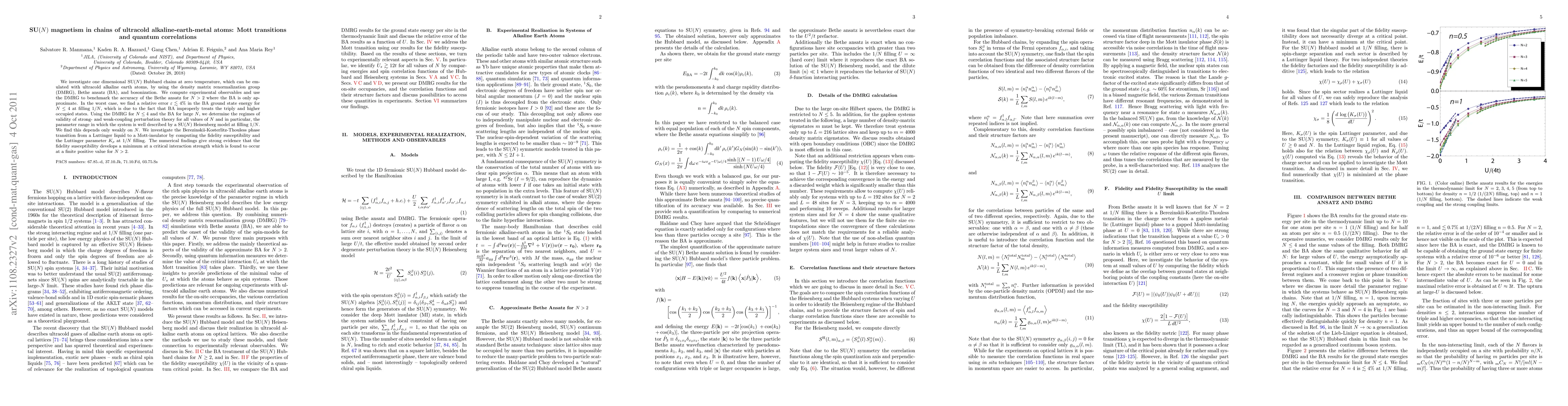 Researchers studied 1D SU(N) Hubbard chains of ultracold alkaline-earth atoms, finding that the Bethe ansatz method is accurate for small N but less reliable for larger N, with a maximum error of 4%. They also discovered a Berezinskii-Kosterlitz-Thouless phase transition at a critical interaction strength for N > 2.