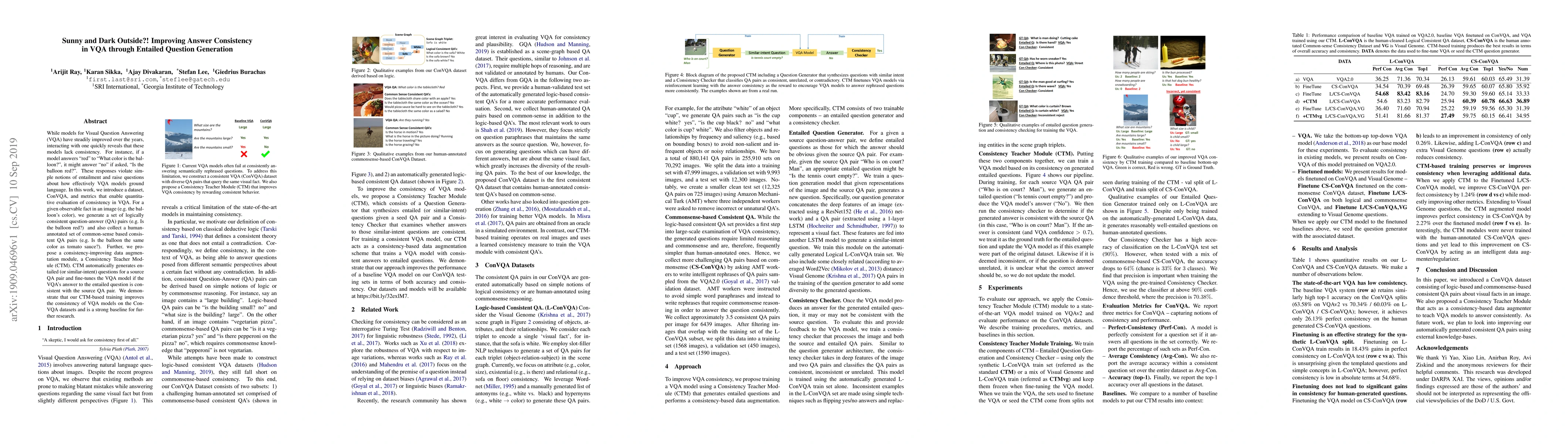 This paper introduces ConVQA, a new dataset and metrics to evaluate consistency in Visual Question Answering (VQA) models, addressing their lack of logical coherence. It proposes a Consistency Teacher Module (CTM) that generates entailed questions to improve model consistency and demonstrates its effectiveness in enhancing VQA model performance.