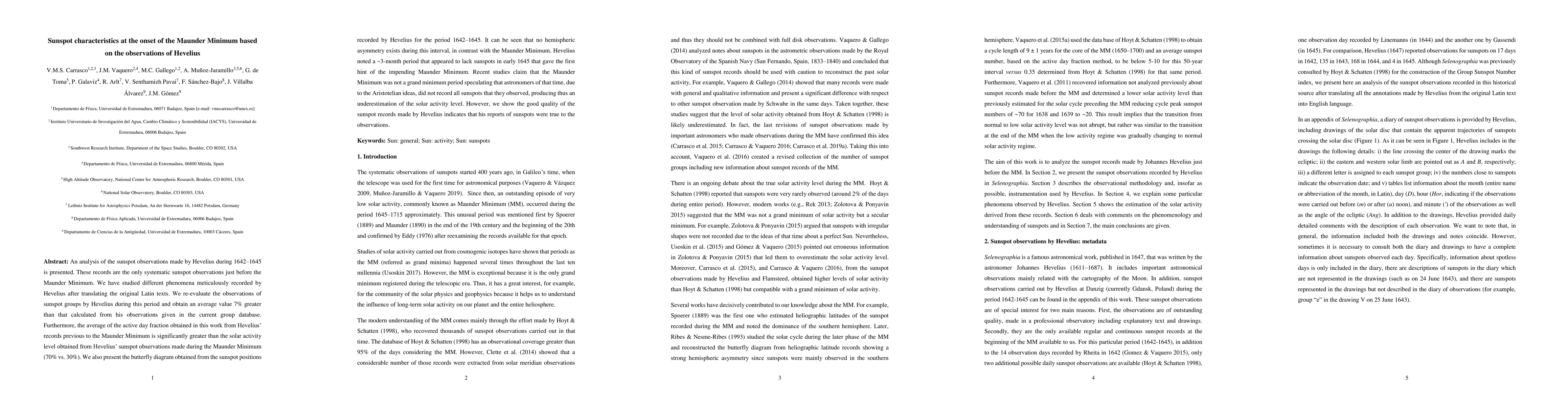 This paper analyzes Hevelius' sunspot observations from 1642-1645, the only systematic records before the Maunder Minimum, revealing an average sunspot group count 7% higher than current databases. The study shows a significantly higher active day fraction (70%) before the Maunder Minimum compared to the period of the minimum (30%), suggesting a more active solar cycle.