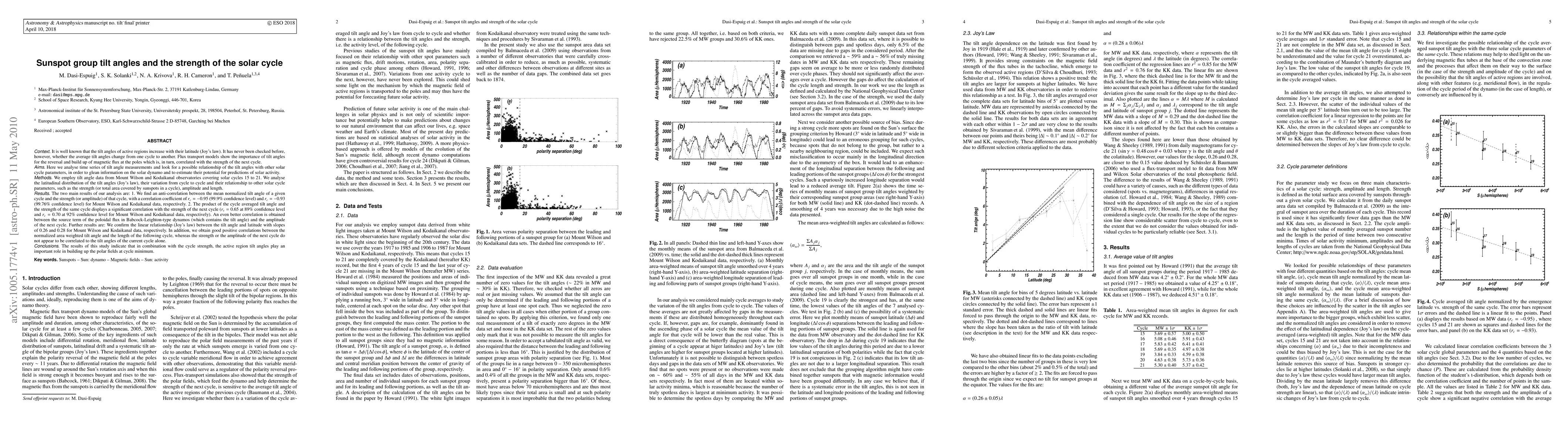 This study investigates the relationship between sunspot group tilt angles and solar cycle strength, finding an anti-correlation between mean tilt angles and cycle strength. The research also reveals a significant correlation between the product of tilt angles and cycle strength with the strength of the subsequent cycle, suggesting tilt angles' role in predicting solar activity.