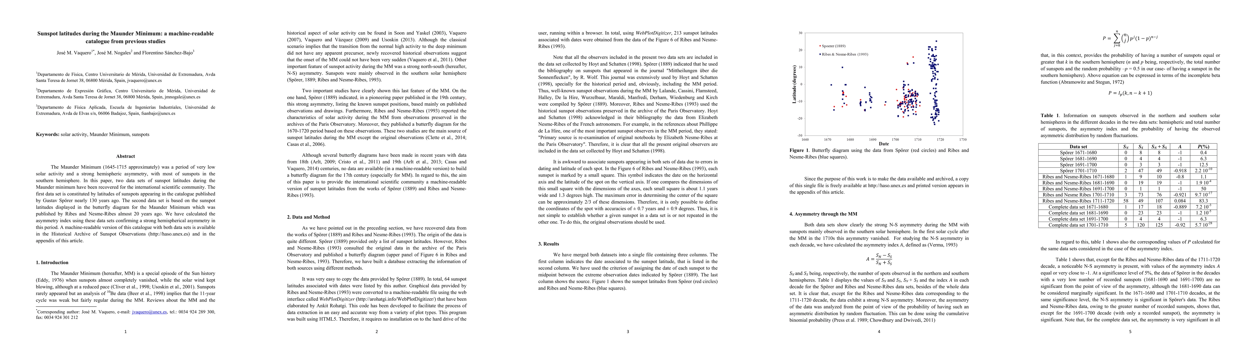 This paper compiles two datasets of sunspot latitudes from the Maunder Minimum, confirming a strong hemispheric asymmetry in solar activity during this period. The datasets are derived from historical catalogues and a butterfly diagram, and a machine-readable catalogue is available online.