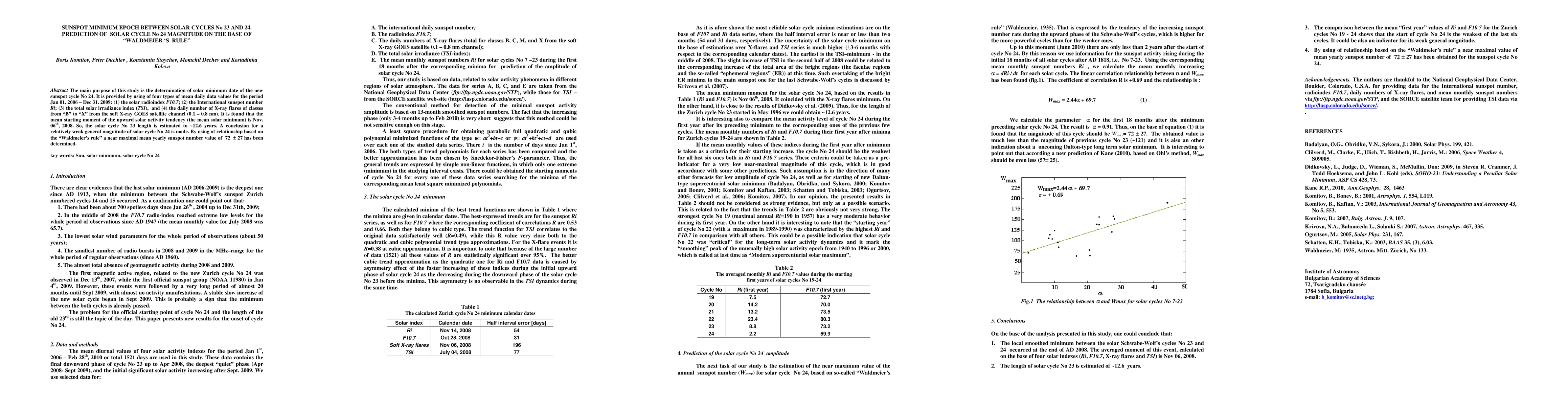 This study determines the solar minimum date for cycle No 24, estimating it to be November 6th, 2008, and predicts a relatively weak cycle with a near maximal yearly sunspot number of 72 ± 27 based on "Waldmeier's rule."