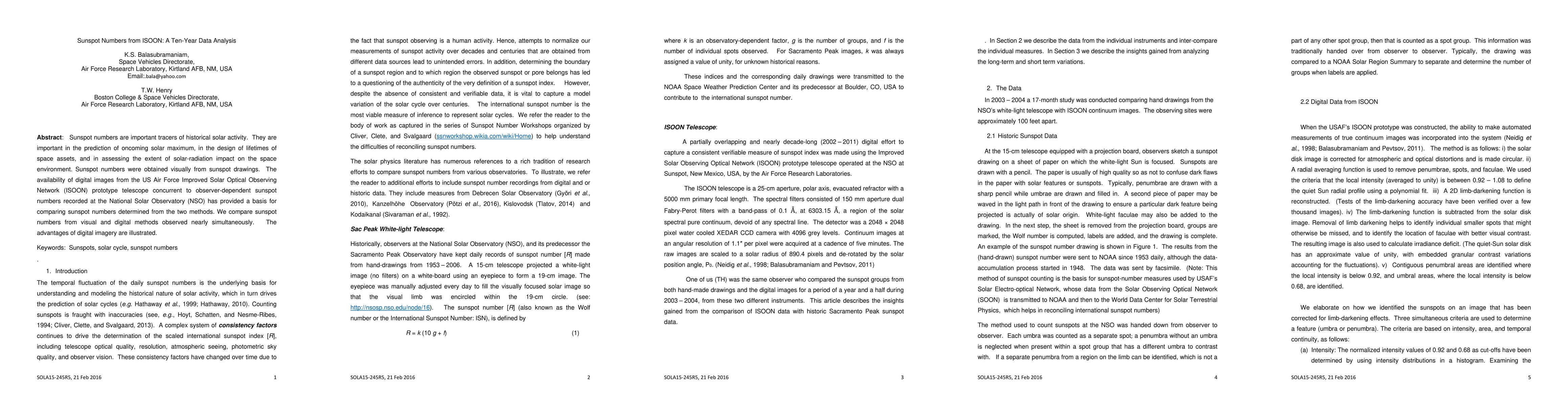 This paper analyzes sunspot numbers from the ISOON over a decade, comparing visual and digital methods of recording sunspots. It highlights the benefits of digital imagery for more accurate and consistent solar activity tracking.
