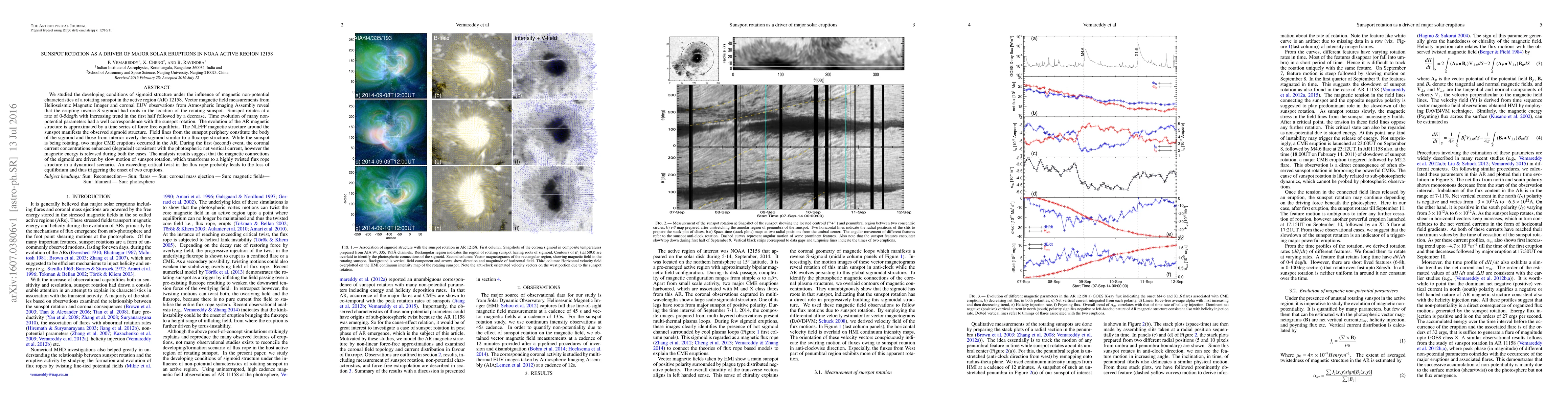 This study investigates the role of sunspot rotation in the development of a sigmoid structure in active region 12158, leading to major solar eruptions. The analysis shows that the sunspot's rotation correlates with the evolution of non-potential magnetic parameters and the formation of an inverse-S sigmoid, which eventually triggers two coronal mass ejections.