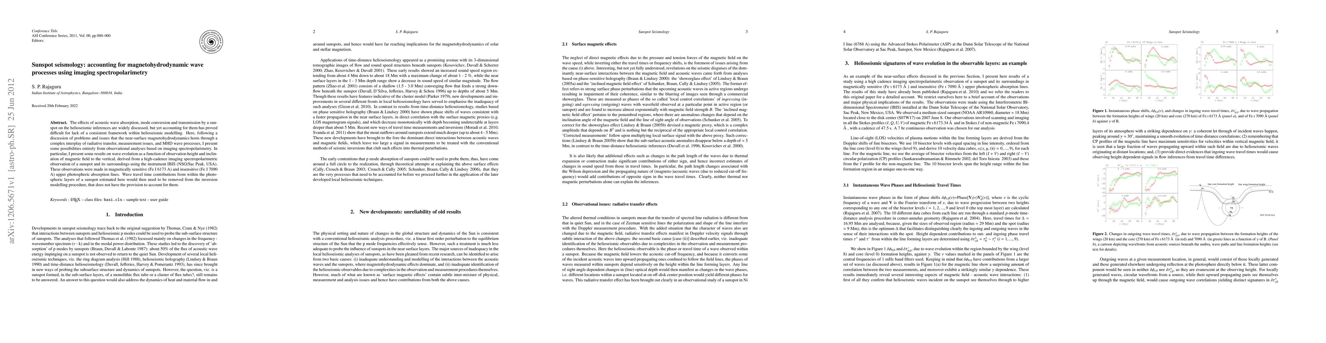 The effects of acoustic wave absorption, mode conversion and transmission by a sunspot on the helioseismic inferences are widely discussed, but yet accounting for them has proved difficult for lack of a consistent framework within helioseismic modelling. Here, following a discussion of problems and issues that the near-surface magnetohydrodynamics hosts through a complex interplay of radiative transfer, measurement issues, and MHD wave processes, I present some possibilities entirely from observational analyses based on imaging spectropolarimetry. In particular, I present some results on wave evolution as a function of observation height and inclination of magnetic field to the vertical, derived from a high-cadence imaging spectropolarimetric observation of a sunspot and its surroundings using the instrument IBIS (NSO/Sac Peak, USA). These observations were made in magnetically sensitive (Fe I 6173 A) and insensitive (Fe I 7090 A) upper photospheric absorption lines. Wave travel time contributions from within the photospheric layers of a sunspot estimated here would then need to be removed from the inversion modelling procedure, that does not have the provision to account for them.