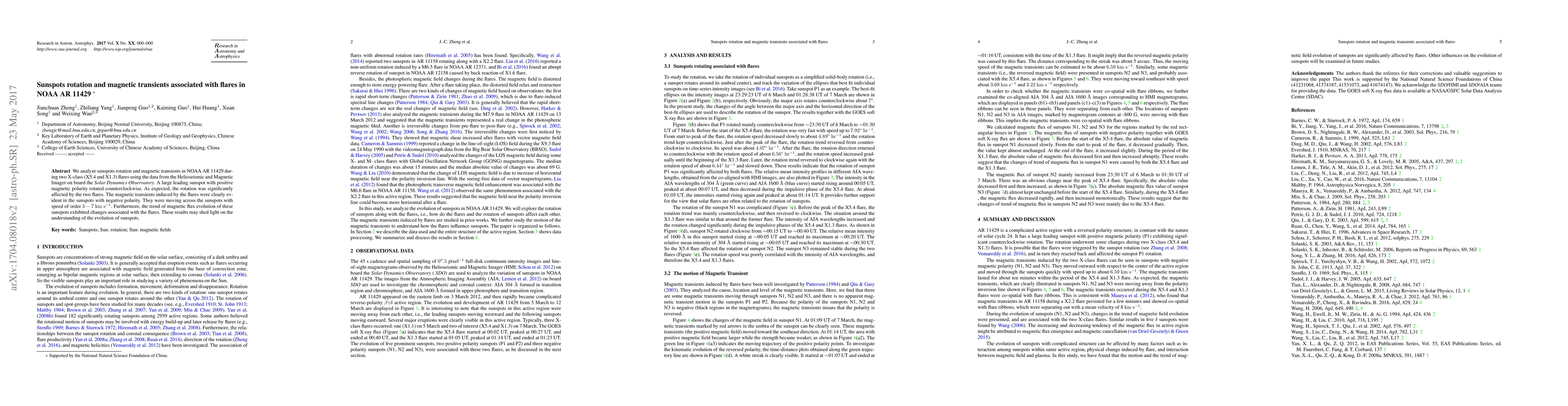 Researchers analyzed sunspots during two X-class flares in NOAA AR 11429, finding that a large leading sunspot's rotation was significantly affected and magnetic transients were evident in sunspots with negative polarity.