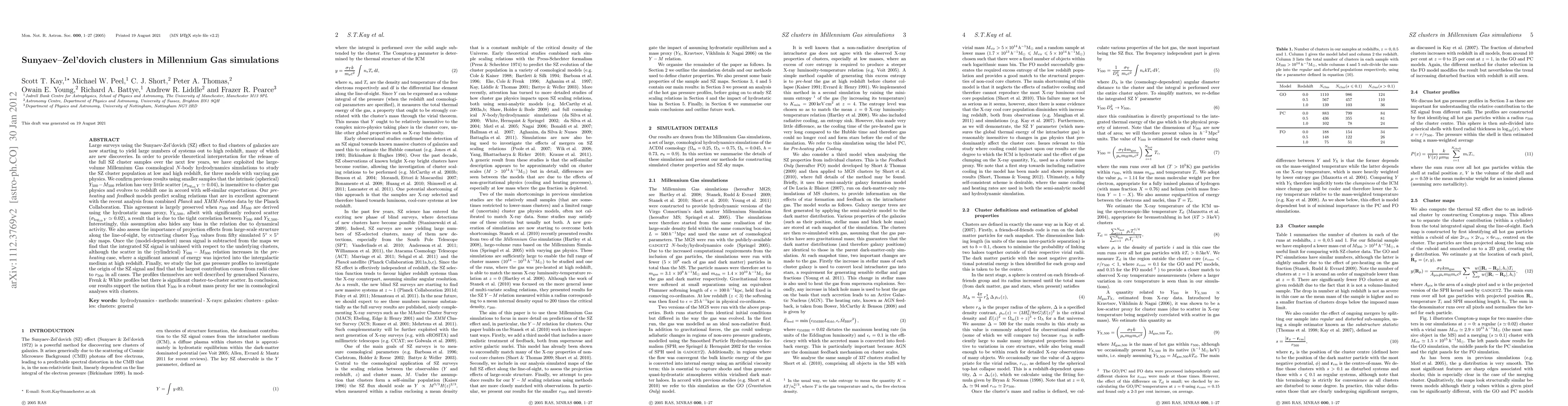 We have exploited the large-volume Millennium Gas cosmological N-body hydrodynamics simulations to study the SZ cluster population at low and high redshift, for three models with varying gas physics. We confirm previous results using smaller samples that the intrinsic (spherical) Y_{500}-M_{500} relation has very little scatter (sigma_{log_{10}Y}~0.04), is insensitive to cluster gas physics and evolves to redshift one in accord with self-similar expectations. Our pre-heating and feedback models predict scaling relations that are in excellent agreement with the recent analysis from combined Planck and XMM-Newton data by the Planck Collaboration. This agreement is largely preserved when r_{500} and M_{500} are derived using the hydrostatic mass proxy, Y_{X,500}, albeit with significantly reduced scatter (sigma_{log_{10}Y}~0.02), a result that is due to the tight correlation between Y_{500} and Y_{X,500}. Interestingly, this assumption also hides any bias in the relation due to dynamical activity. We also assess the importance of projection effects from large-scale structure along the line-of-sight, by extracting cluster Y_{500} values from fifty simulated 5x5 square degree sky maps. Once the (model-dependent) mean signal is subtracted from the maps we find that the integrated SZ signal is unbiased with respect to the underlying clusters, although the scatter in the (cylindrical) Y_{500}-M_{500} relation increases in the pre-heating case, where a significant amount of energy was injected into the intergalactic medium at high redshift. Finally, we study the hot gas pressure profiles to investigate the origin of the SZ signal and find that the largest contribution comes from radii close to r_{500} in all cases. The profiles themselves are well described by generalised Navarro, Frenk & White profiles but there is significant cluster-to-cluster scatter.