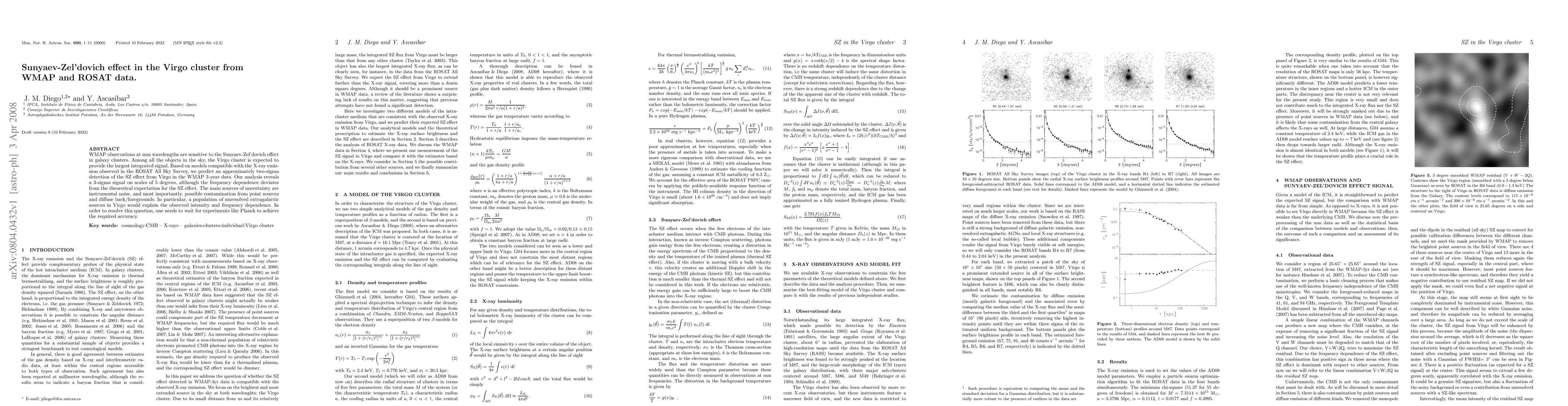 This paper reports a 3-sigma detection of the Sunyaev-Zel'dovich effect in the Virgo cluster using WMAP data, though the frequency dependence deviates from theoretical predictions. The main uncertainties arise from instrumental noise and potential contamination from unresolved extragalactic sources.
