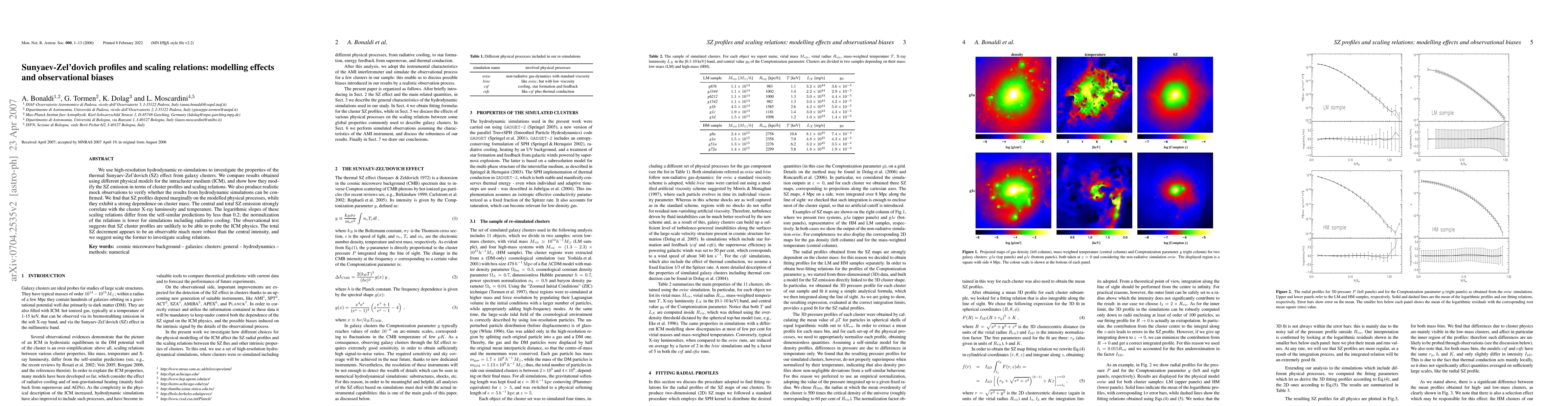 We use high-resolution hydrodynamic re-simulations to investigate the properties of the thermal Sunyaev-Zel'dovich (SZ) effect from galaxy clusters. We compare results obtained using different physical models for the intracluster medium (ICM), and show how they modify the SZ emission in terms of cluster profiles and scaling relations. We also produce realistic mock observations to verify whether the results from hydrodynamic simulations can be confirmed. We find that SZ profiles depend marginally on the modelled physical processes, while they exhibit a strong dependence on cluster mass. The central and total SZ emission strongly correlate with the cluster X-ray luminosity and temperature. The logarithmic slopes of these scaling relations differ from the self-similar predictions by less than 0.2; the normalization of the relations is lower for simulations including radiative cooling. The observational test suggests that SZ cluster profiles are unlikely to be able to probe the ICM physics. The total SZ decrement appears to be an observable much more robust than the central intensity, and we suggest using the former to investigate scaling relations.