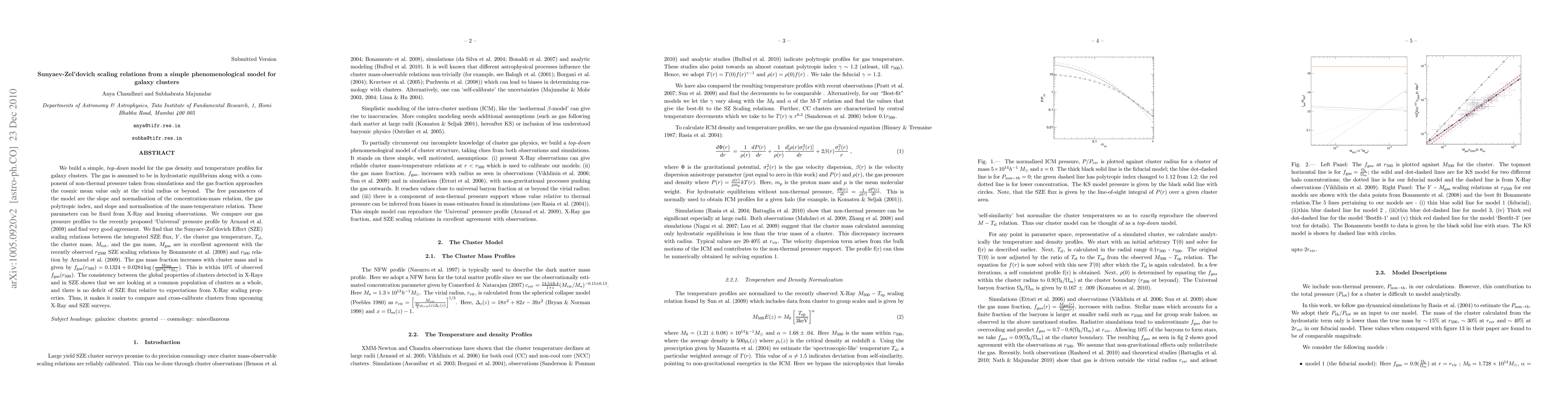 We build a simple, {\it top-down} model for the gas density and temperature profiles for galaxy clusters. The gas is assumed to be in hydrostatic equilibrium along with a component of non-thermal pressure taken from simulations and the gas fraction approaches the cosmic mean value only at the virial radius or beyond. The free parameters of the model are the slope and normalisation of the concentration-mass relation, the gas polytropic index, and slope and normalisation of the mass-temperature relation. These parameters can be fixed from X-Ray and lensing observations. We compare our gas pressure profiles to the recently proposed `Universal' pressure profile by \cite{Arnaud09} and find very good agreement. We find that the Sunyaev-Zel'dovich Effect (SZE) scaling relations between the integrated SZE flux, $Y$, the cluster gas temperature, $T_{\rm sl}$, the cluster mass, $M_{\rm tot}$, and the gas mass, $M_{\rm gas}$ are in excellent agreement with the recently observed $r_{2500}$ SZE scaling relations by \cite{Bonamente08} and $r_{500}$ relation by \cite{Arnaud09}. The gas mass fraction increases with cluster mass and is given by $f_{\rm gas}(r_{500}) = 0.1324 + 0.0284 \,\rm{log}\, (\frac{M_{500}}{10^{15}h^{-1}M_\odot})$. This is within $10%$ of observed $f_{\rm gas}(r_{500})$. The consistency between the global properties of clusters detected in X-Rays and in SZE shows that we are looking at a common population of clusters as a whole, and there is no deficit of SZE flux relative to expectations from \xr scaling properties. Thus, it makes it easier to compare and cross-calibrate clusters from upcoming \xr and SZE surveys.