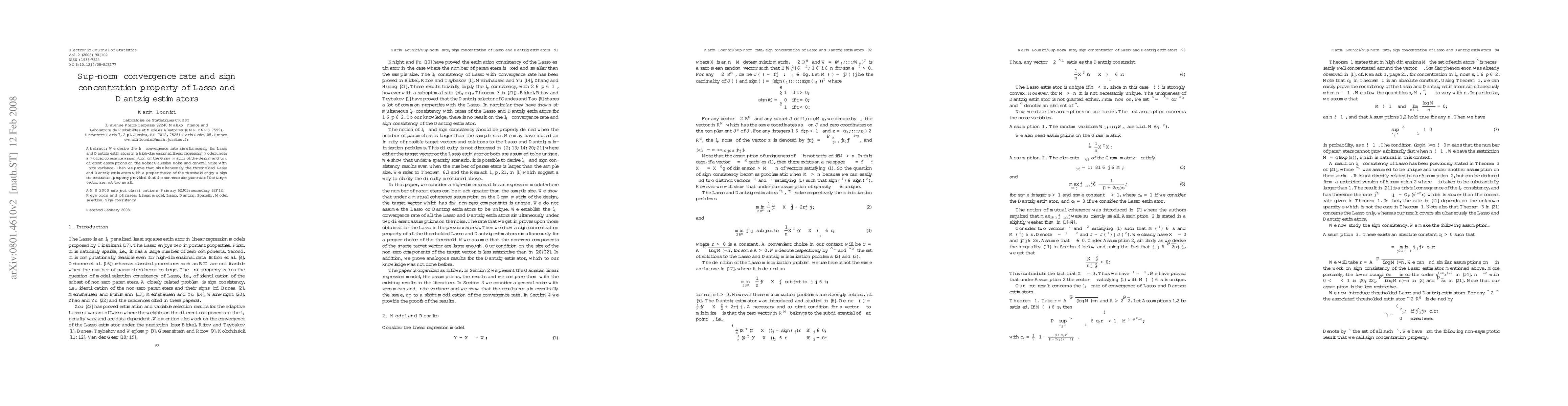This paper establishes the $l_{\infty}$ convergence rate for Lasso and Dantzig estimators in high-dimensional linear regression, under coherence assumptions and different noise conditions. It also demonstrates that these estimators exhibit a sign concentration property when the non-zero components of the target vector are sufficiently large.